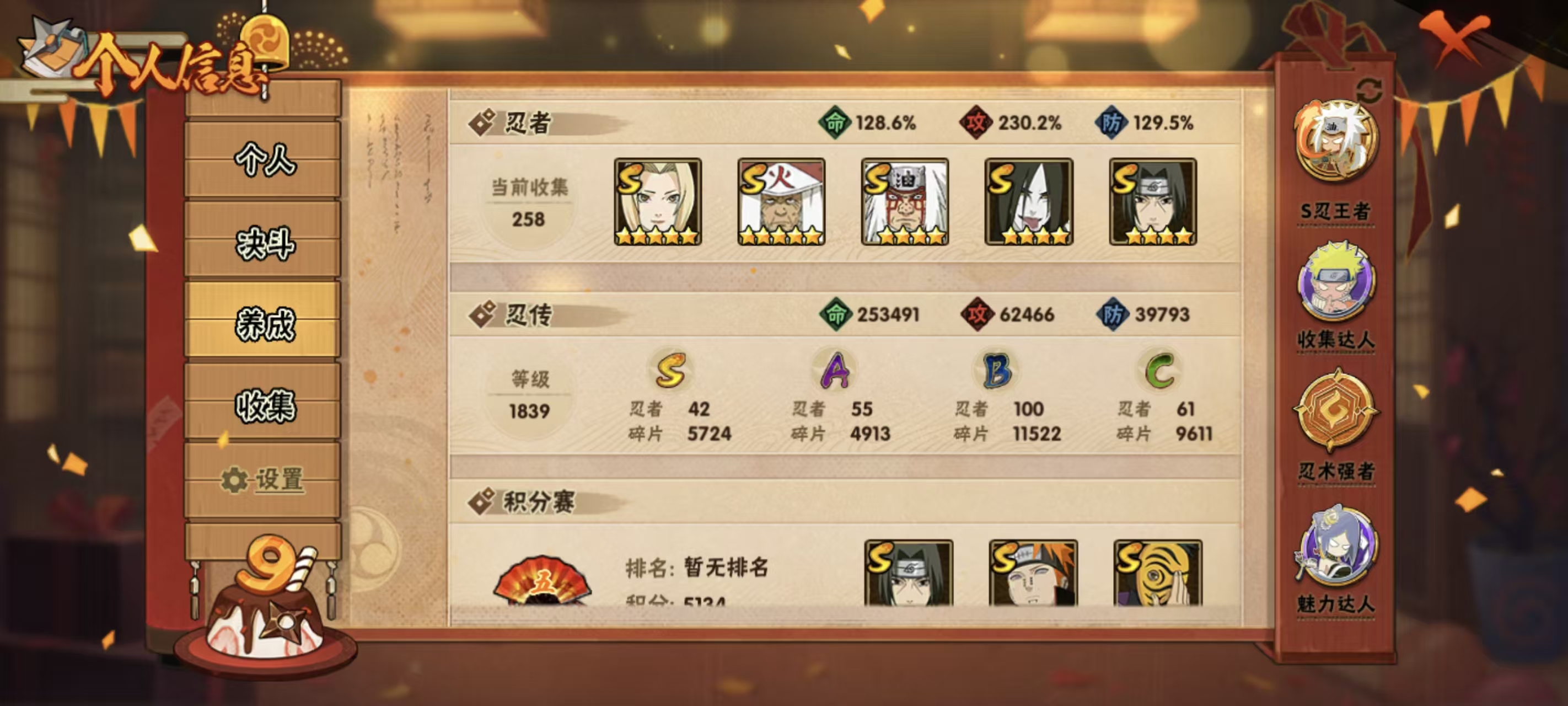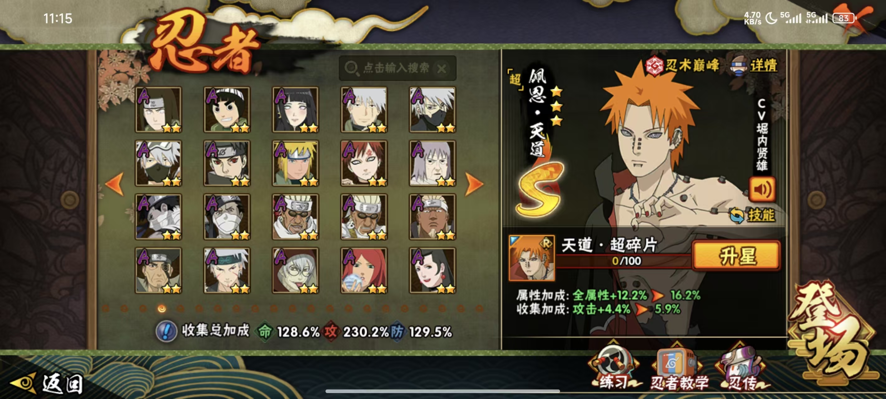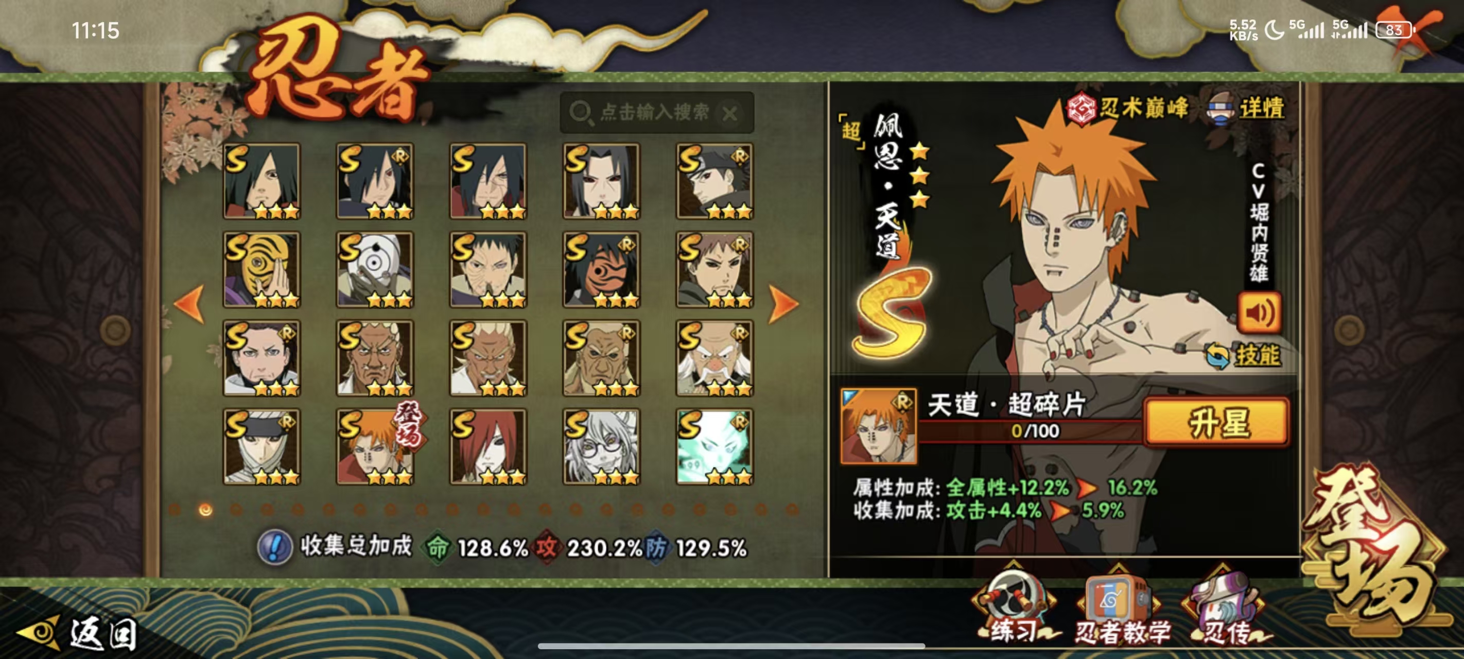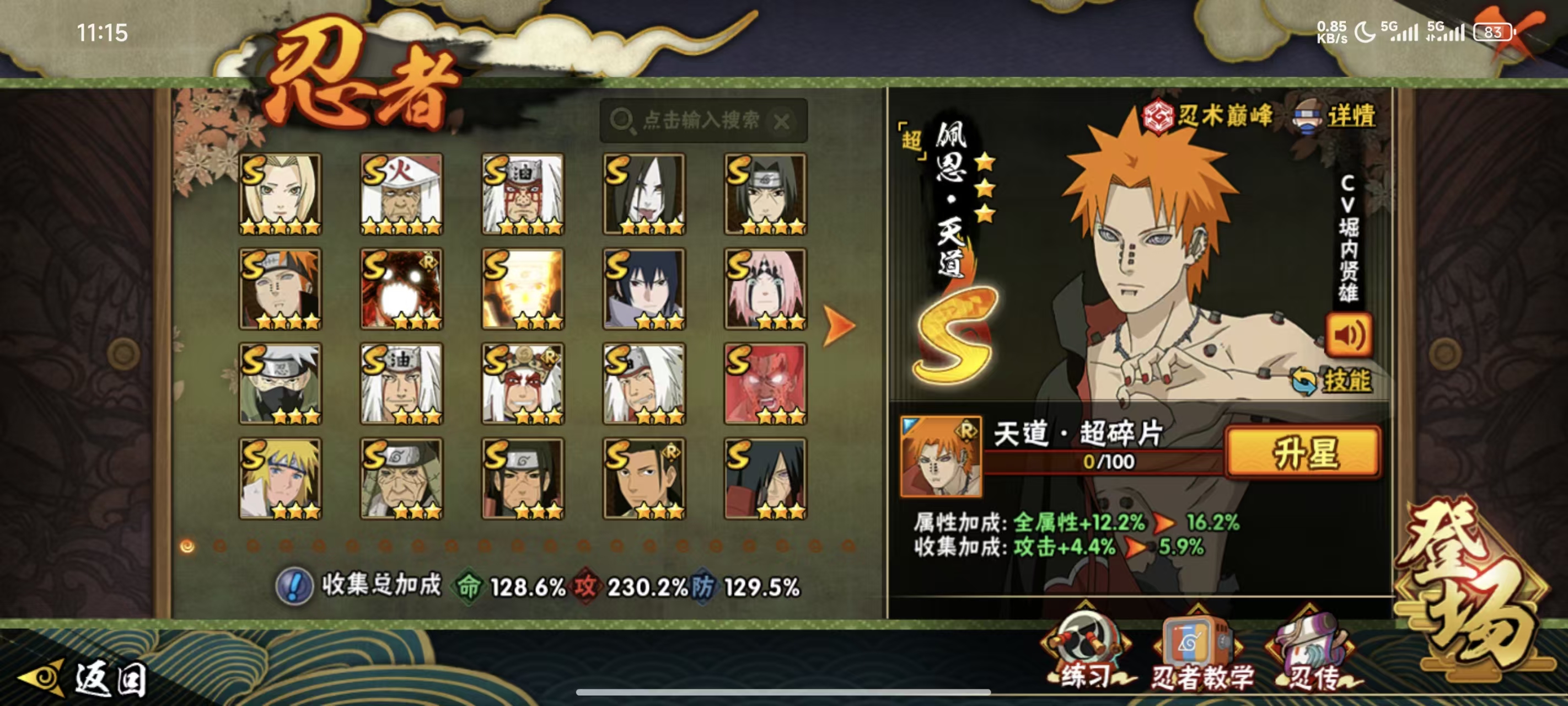 长十郎秒✨42S✨55a✨百战天道✨须佐止水✨解斑和桃式博人不缘已秒✨忍战艾✨桃式✨无九喇叭鸣人死门凯死三创立班创立柱间天道超罗砂宇智波佐助✨忍战樱带土大野木仙人兜漂泊小南✨多点卷高招A✨通灵鹰和辛牙以出