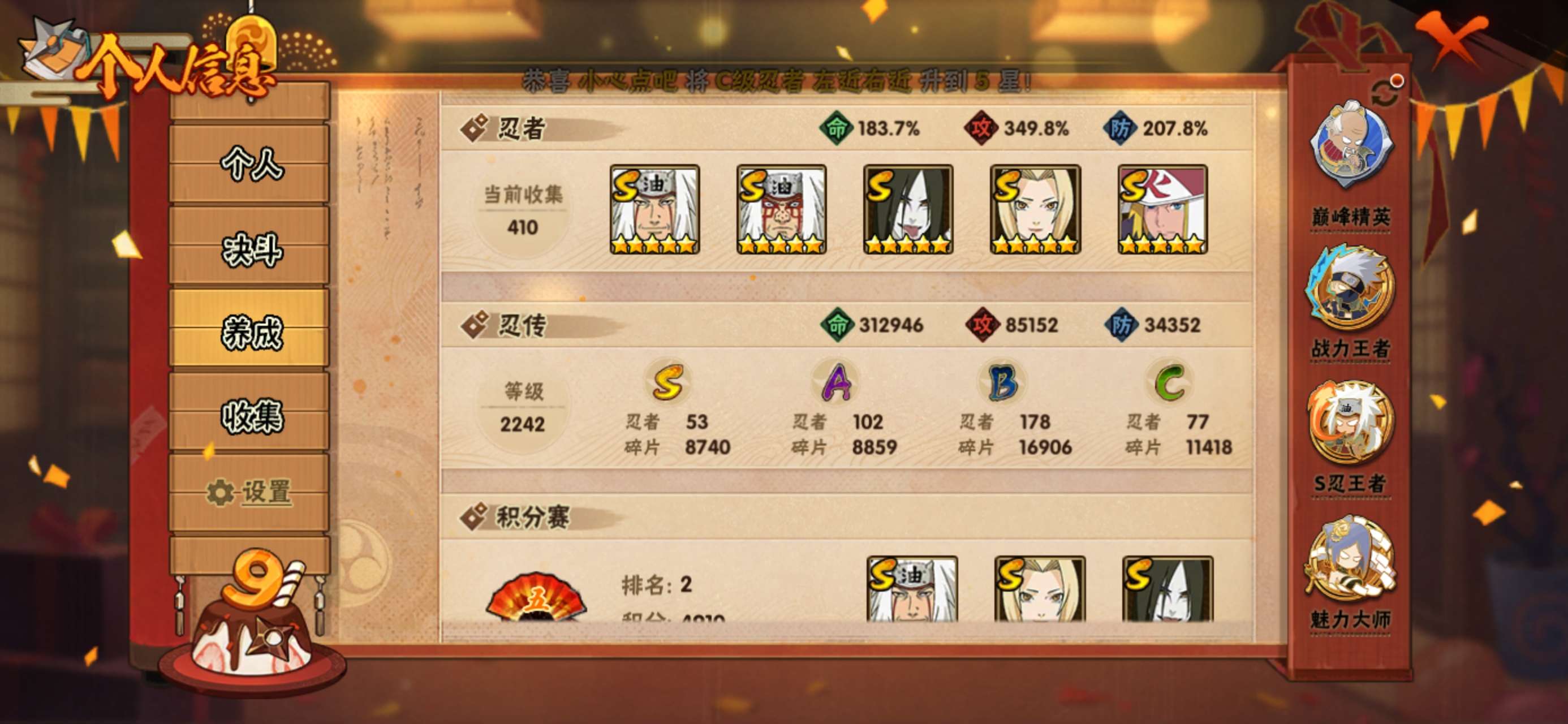 (精品号)53S 102A 410忍 3200w战 金身水门 漂泊土 须佐卡卡西 艾 桃式 解班 创立柱间 永恒佐助 九喇嘛 幻卡