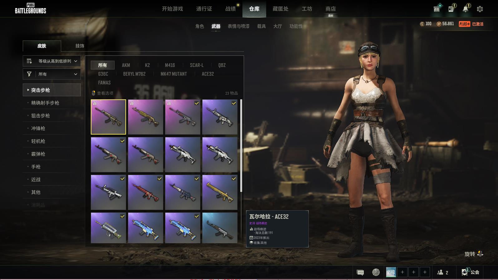 PUBG豪华版满级生存可排位,瓦尔哈拉-ACE32;黄金齿轮-BERYLM762;余音环绕-ACE32;火山灰烬-SCAR-L;鎏金王朝-REPVLM762;分