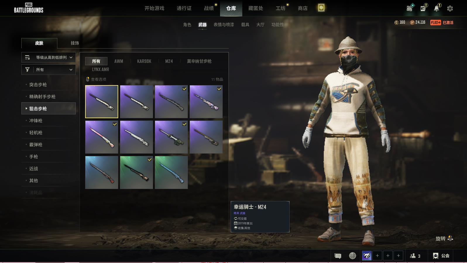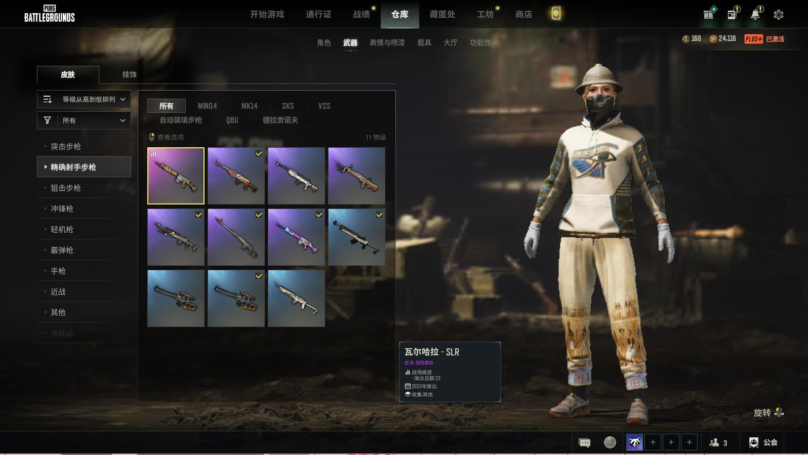 PUBG豪华版绝地求生可排位,无信号-M416;瓦尔哈拉-SLR;无信号-S12K;数码沙漠迷彩-M416;分秒必争-QBZ;分形几何-G36C;分形几何-0B