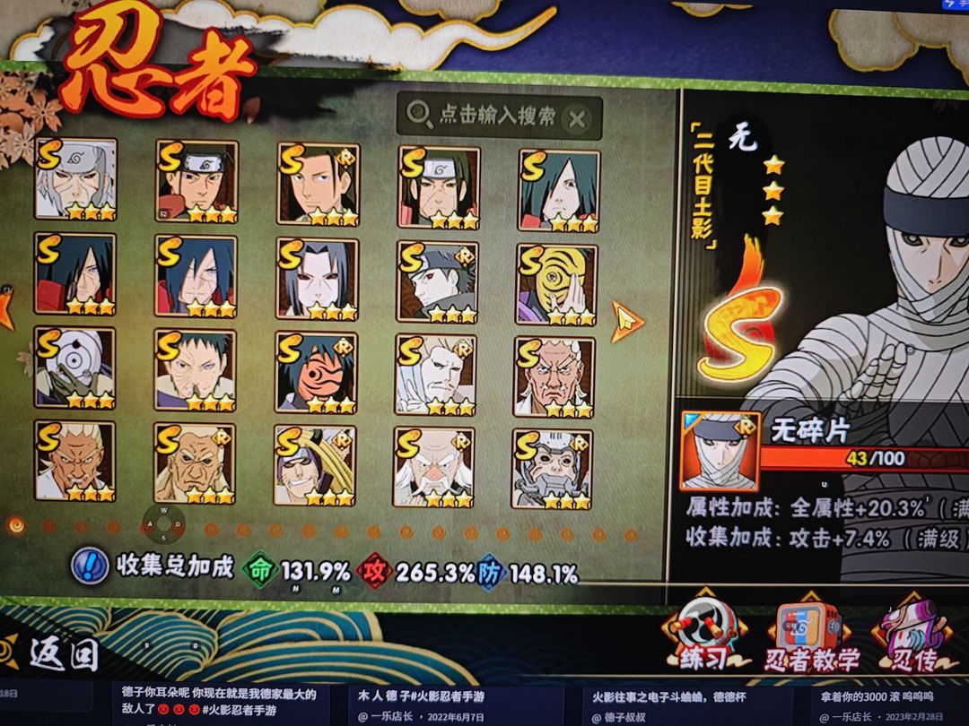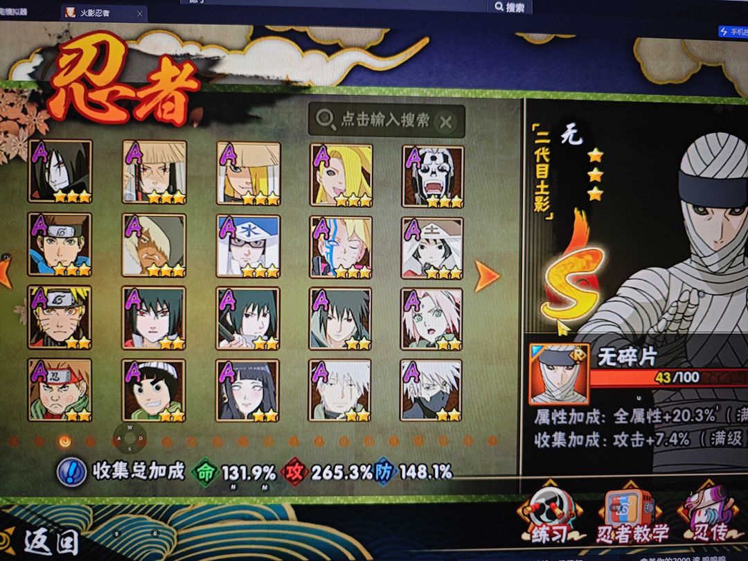 已秒金水(每个S秒A跳过)✨基本全S(有些忍法帖再补)✨30s+✨1750战✨常驻超影(可体验对局)
