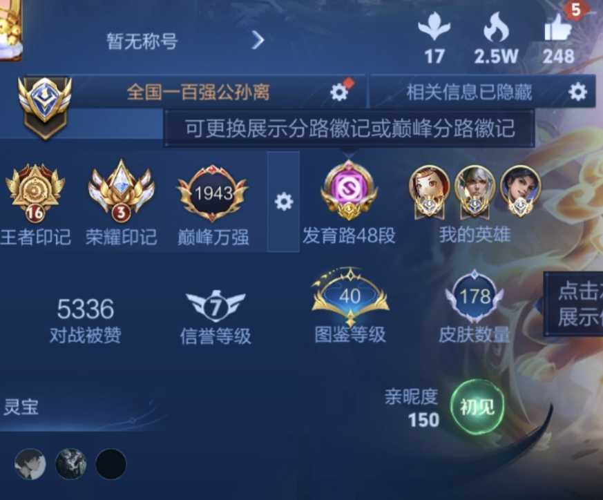 本周在榜国服100强公孙离⭐巅峰万强闪电框❤️历史国服鲁班国服嬴政❤️掉信誉分永久拉黑