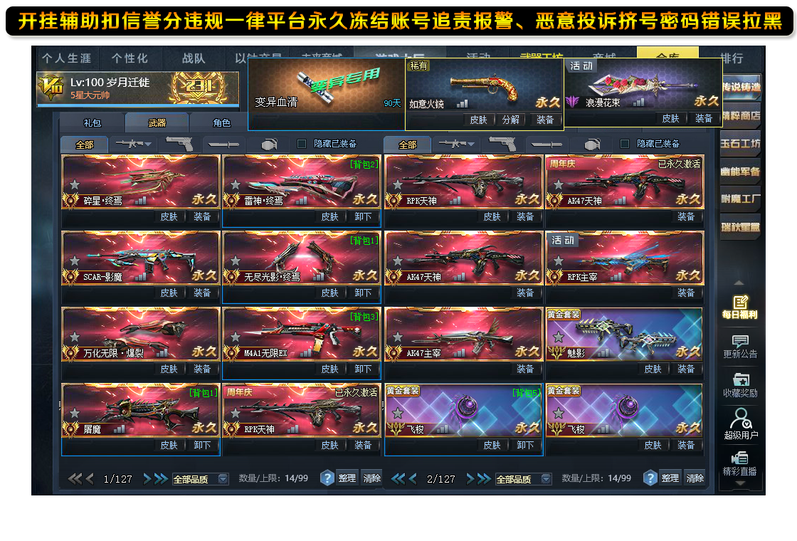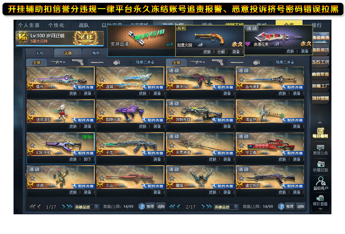 v11血清潘多拉魅影碎星雷神无尽终焉无限EX屠魔影魔天神主宰13传说连城迷你派拉弧光◆浪漫花束如意火铳伏虎满配◆幻锋