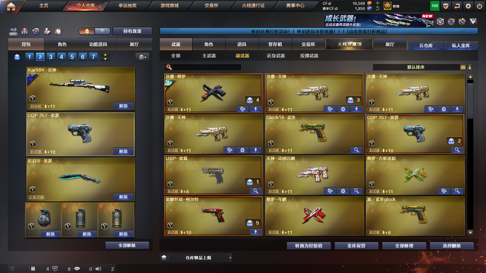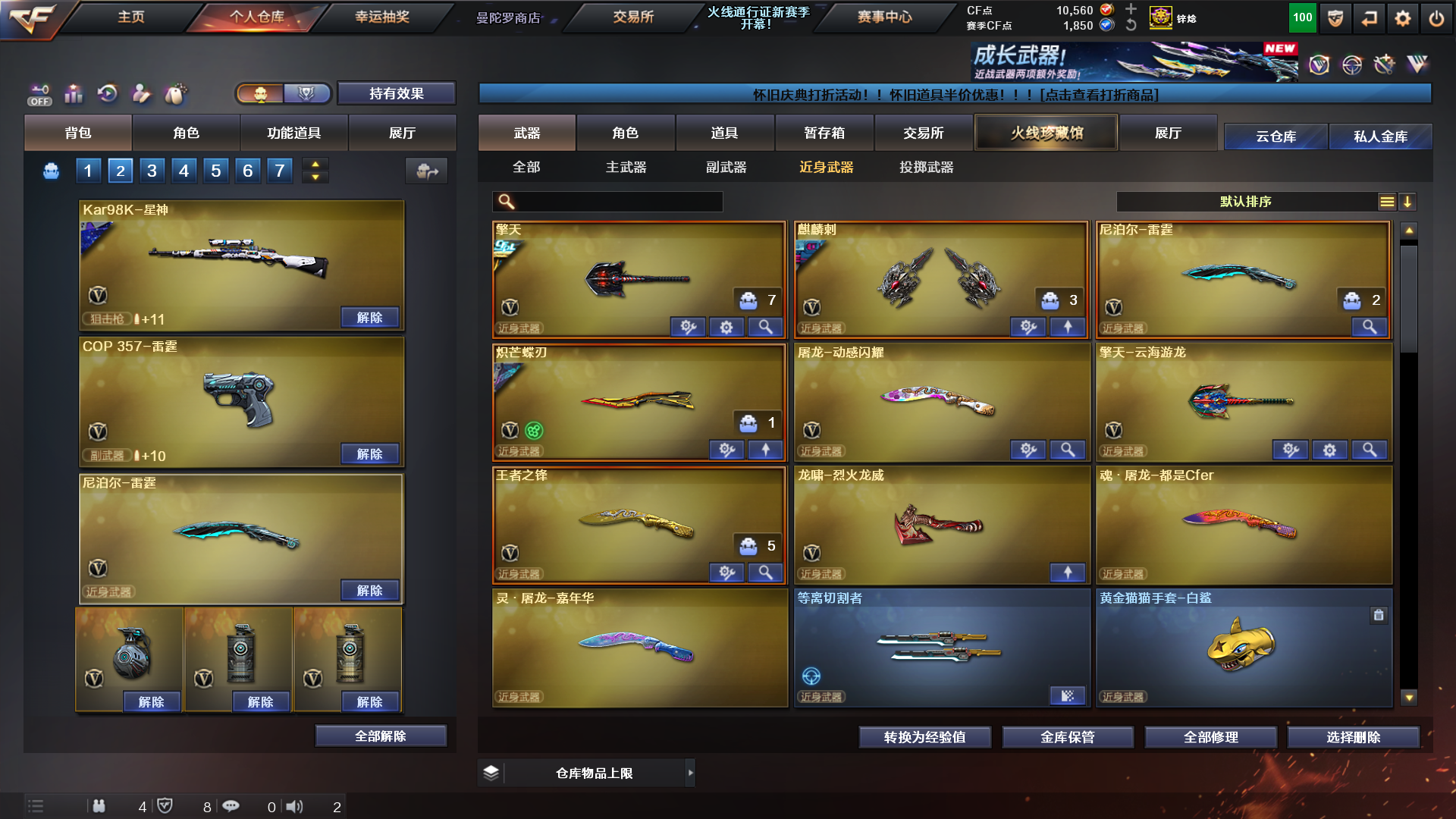 首页 > 租号大厅 > 穿越火线 > 电信区/安徽一区 > 东部天花版168V✅8传说4防角色✅黄金猫猫手套炙芒蝶刃✅冠军柯尔特满级手雷✅6盘6烈无限子弹猛攻号
