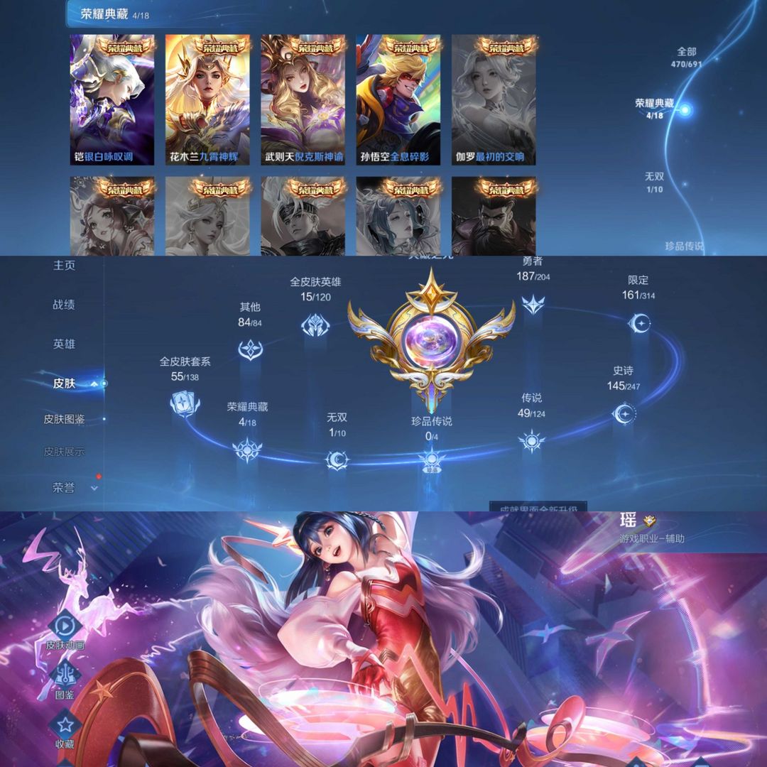V11✨741皮肤✨神罪✨山海经天机白泽✨全套死神联动✨全套穆夏✨馥梦繁花✨美神临世✨库洛米✨大耳狗✨全荣耀水晶✨螭龙剑✨全无双
