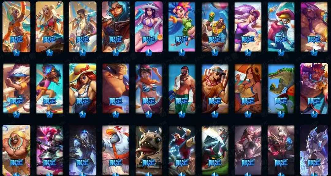 1000皮肤♥龙瞎♥海克斯摄魂VN人马♥送披萨的小姐姐全炫彩♥周年限定♥玉剑传说♥泳池电玩战队