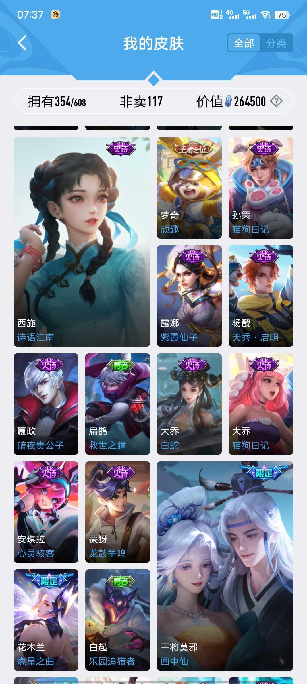 v10、509皮、刘备星传说时之思念、韩信荣耀典藏、瑶珍品传说大耳狗之梦、青丘·九尾、星域神启、画中仙、深海之息、天魔缭乱