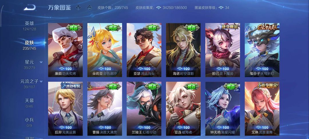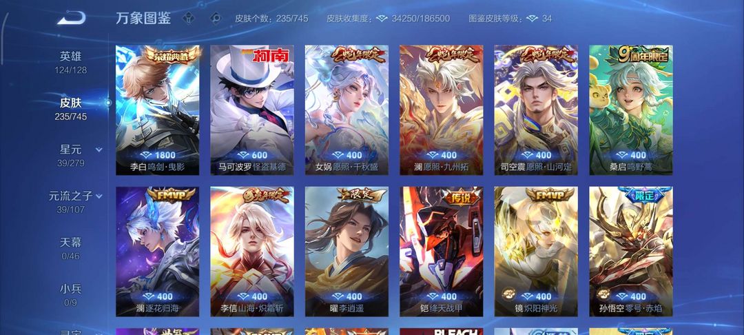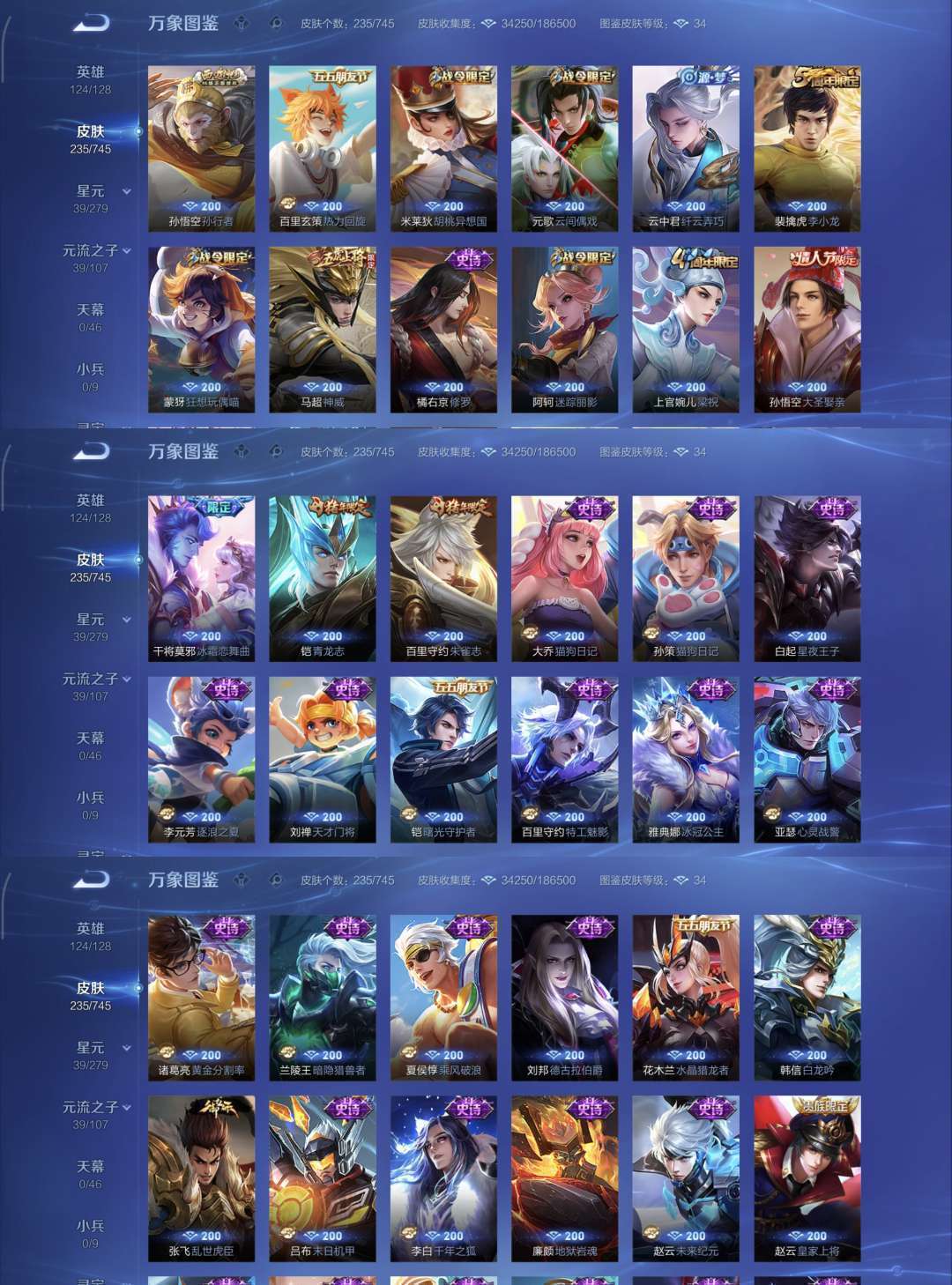 v10、12水539皮、死亡执政官、刘备星传说时之思念、小兵皮肤大耳狗甜茶、瑶无双真我赫兹、愿照·九州拓、怪盗基德、画中仙、至尊宝、凤求凰、神威、天魔缭乱