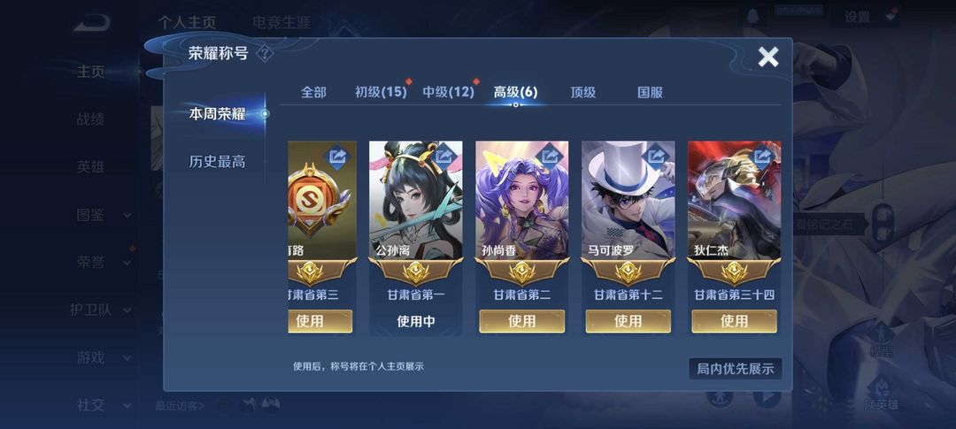 本周在榜省孙尚香阿离马可狄仁杰⭐巅峰1800⭐78段发育历史五大国服