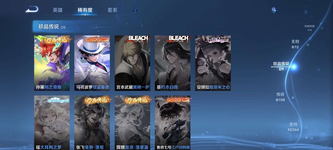 v10、509皮、刘备星传说时之思念、韩信荣耀典藏、瑶珍品传说大耳狗之梦、青丘·九尾、星域神启、画中仙、深海之息、天魔缭乱