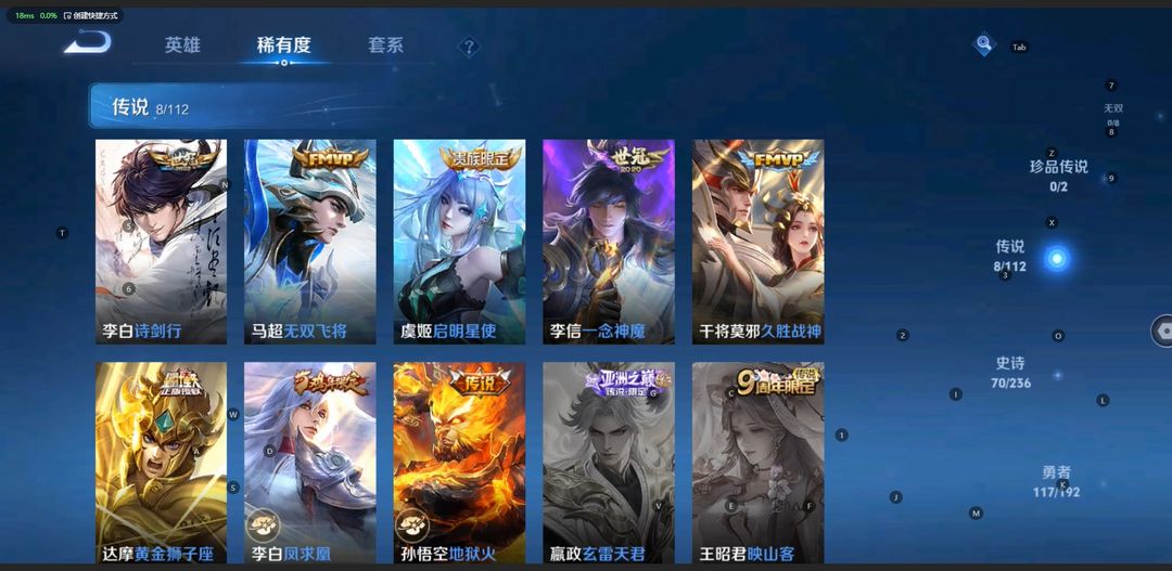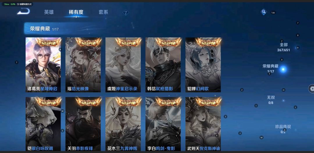 【非沄】无双贵10★真榜一满典藏630满皮★马克新皮★★虞姬星元★白金战甲★按键★瑶、天使星元