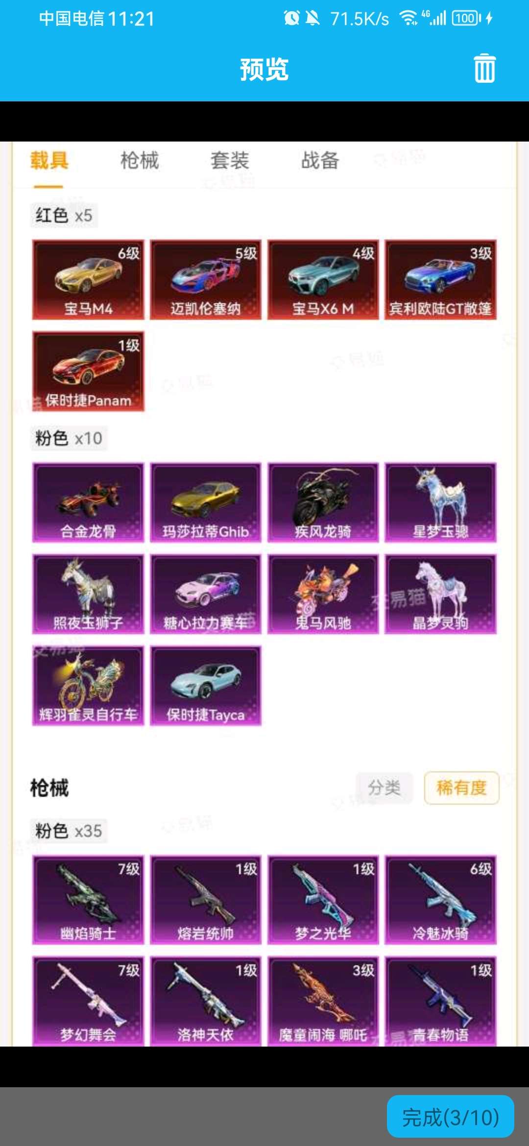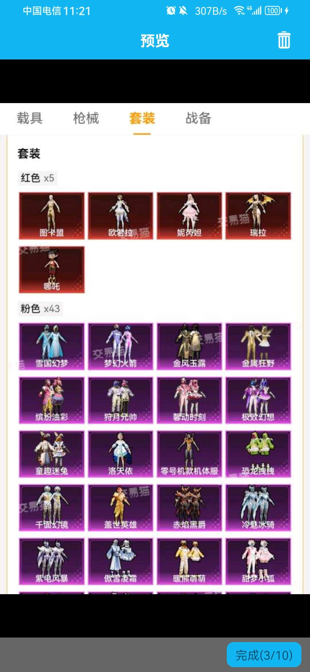 15载具 35升级枪 43粉装 9飞行器 397枪皮 315套装 213660热力 21印记
