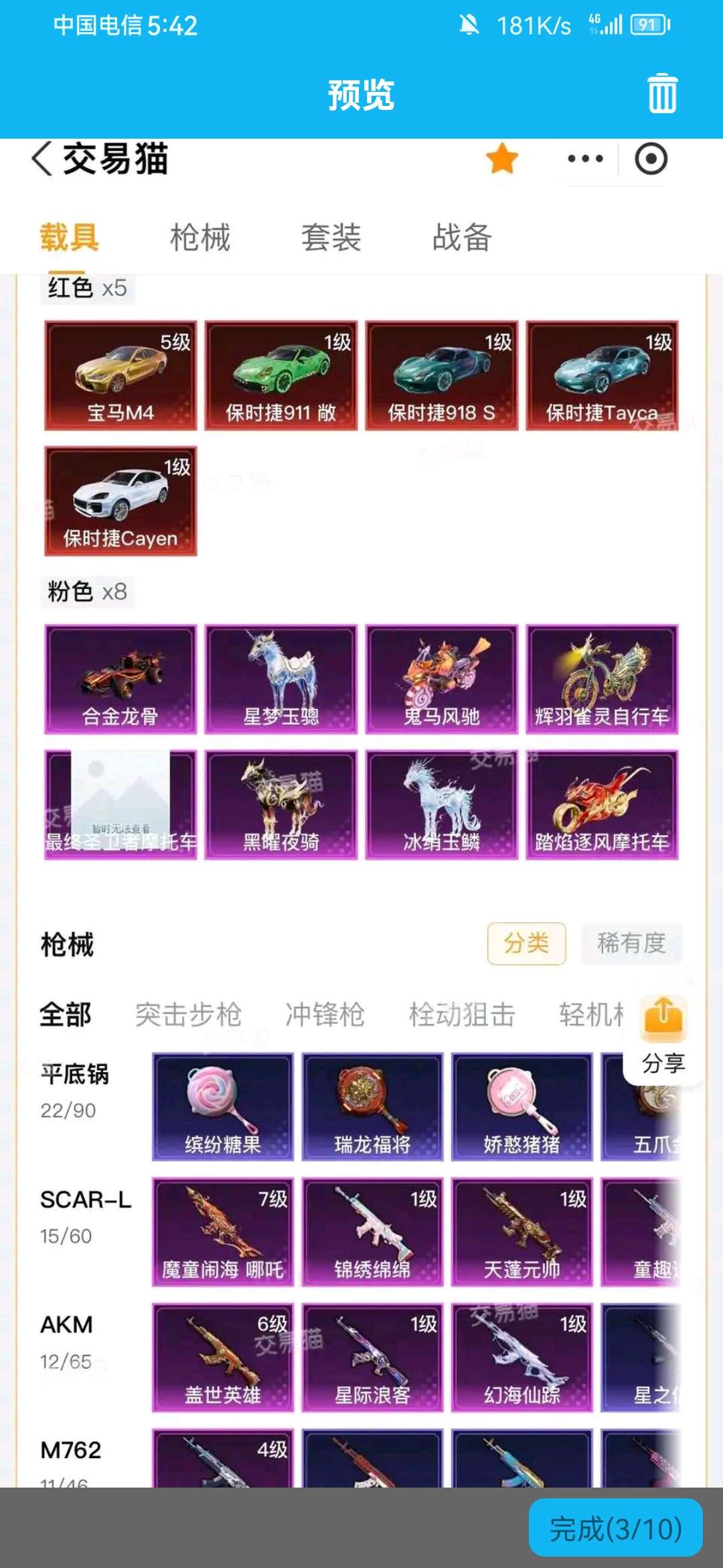 13载具23升级枪11粉装2红装,保时捷宝马全套系列,满级哪吒闹海!
