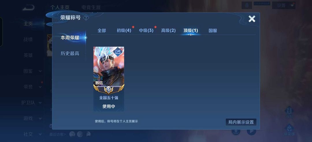 立即租号首页 > 租号大厅 > 王者荣耀 > 标题写明区服/QQ > 【高危只能无限乱斗】11月在榜小国服韩信❤️国50韩信❤️高胜率带妹必备❤️历史国服猴子