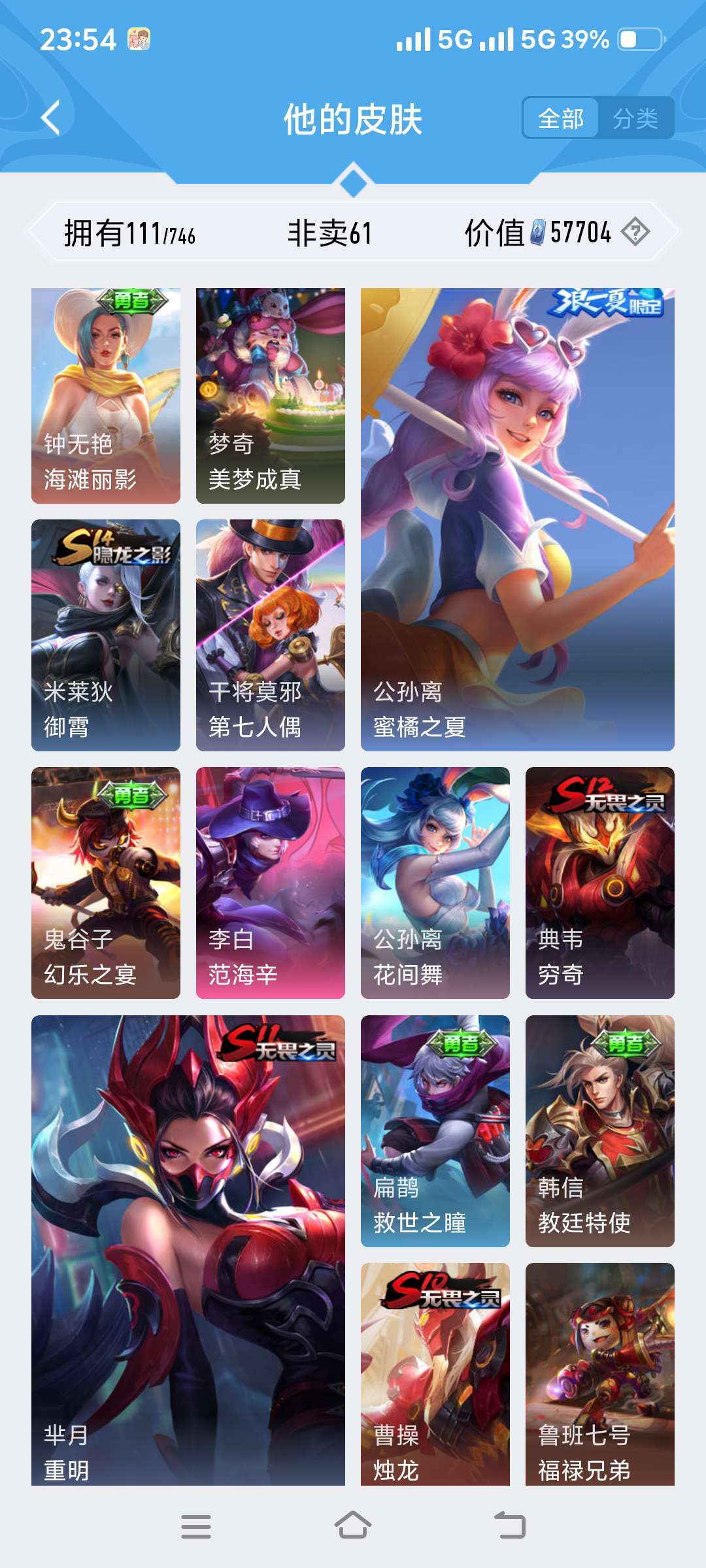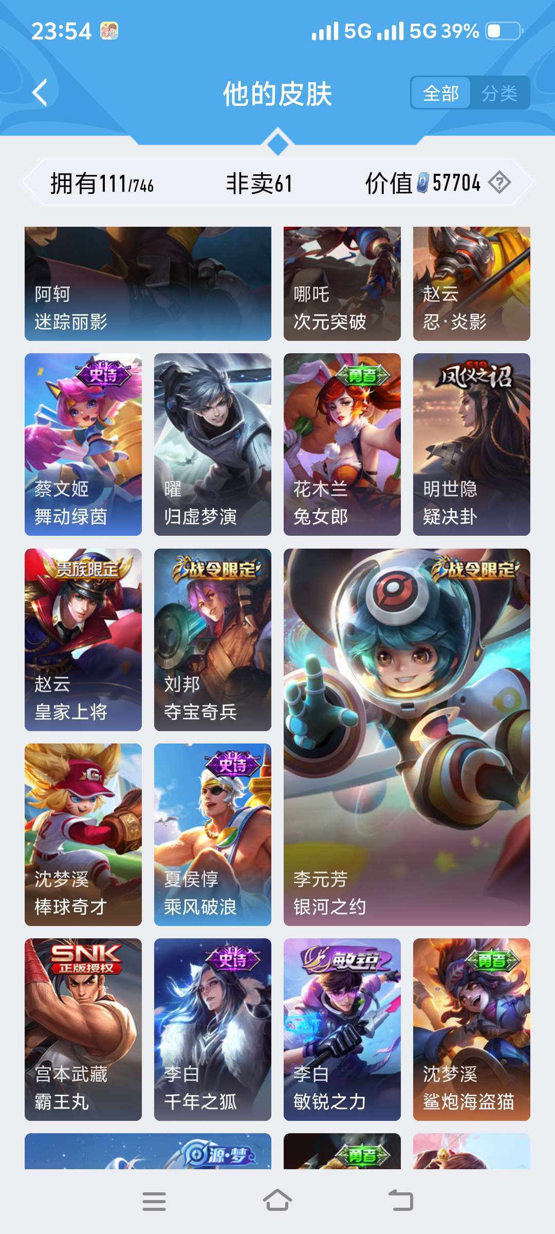妹子号✨贵族10✨383皮肤✨110英雄✨8个荣耀典藏✨稀有皮肤超级多✨值得入手下单玩✨请把游戏截屏看完✨挂机逃跑⚡一律永久拉黑!