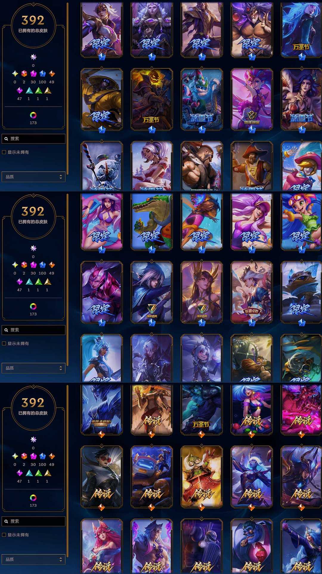 ★艾欧尼亚★情人节★冰雪节★万圣节★海之歌★泳池派对★玉剑★灵魂莲华★西部魔影★