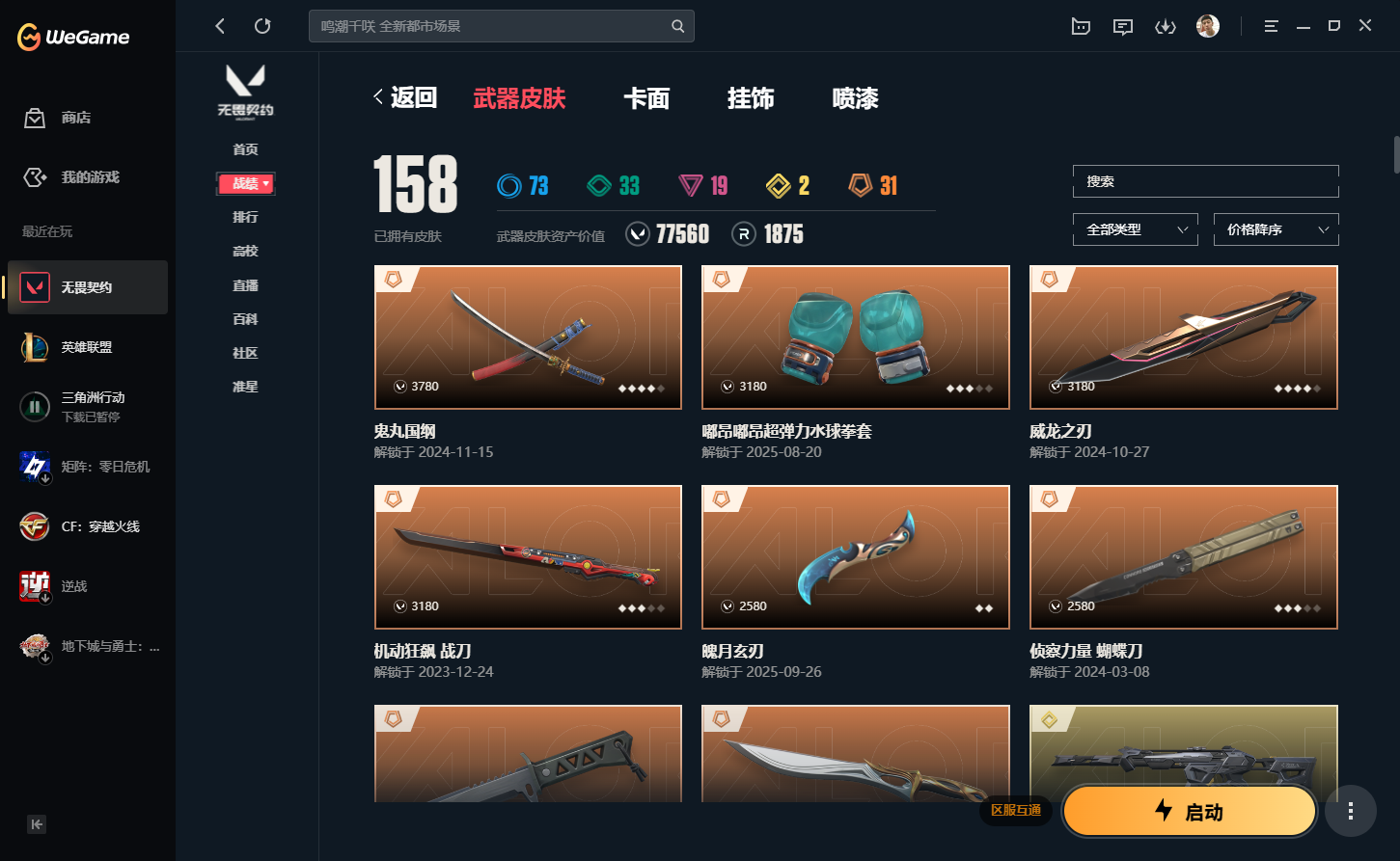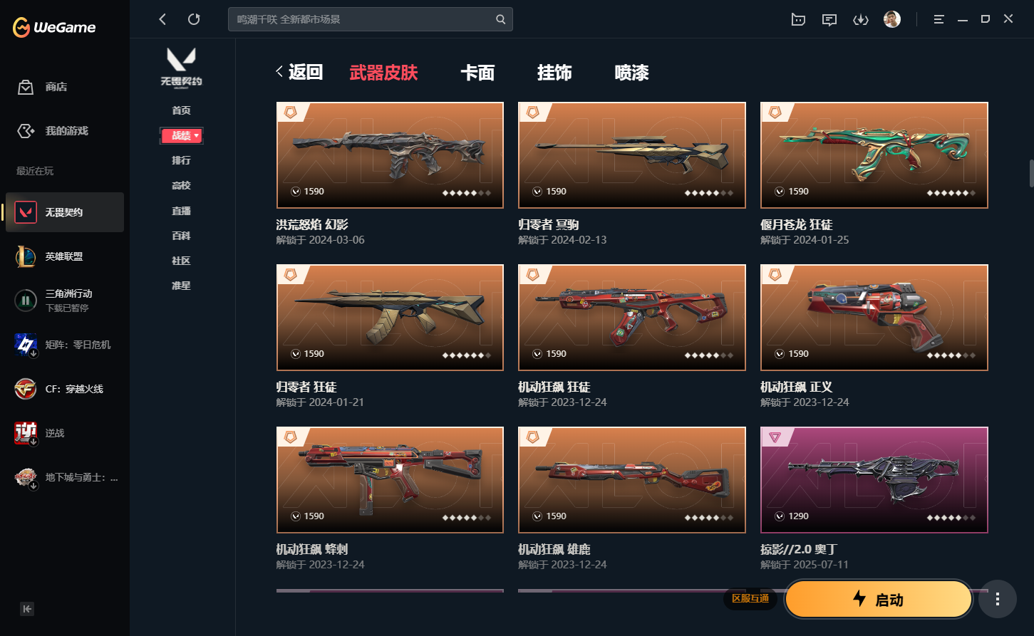 wegame无畏契约★皮肤数量158 限定31 尊爵19 机动狂飙套装 归零者狂徒 奇点战神 末日泡泡幻影 更多精品皮肤等你来使用