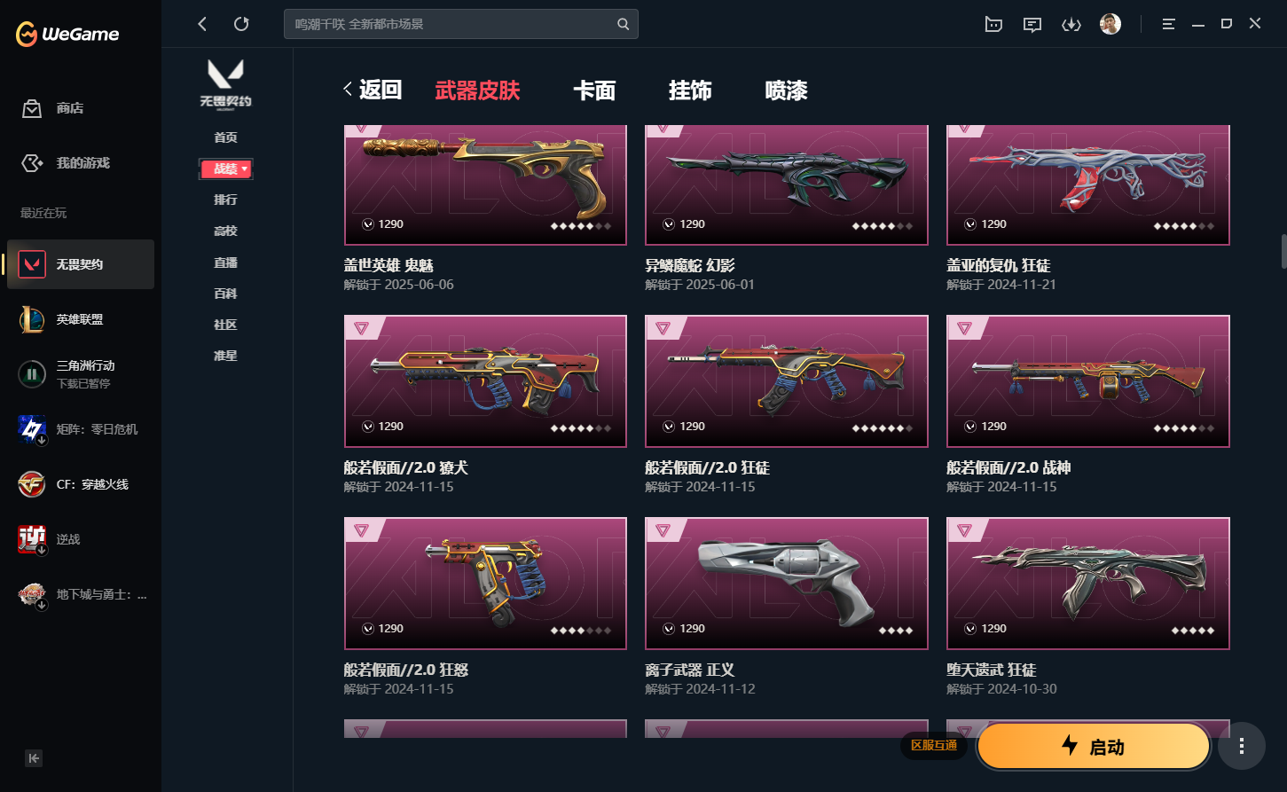 • 游戏区服:无畏契约-wegame / wegame / wegame