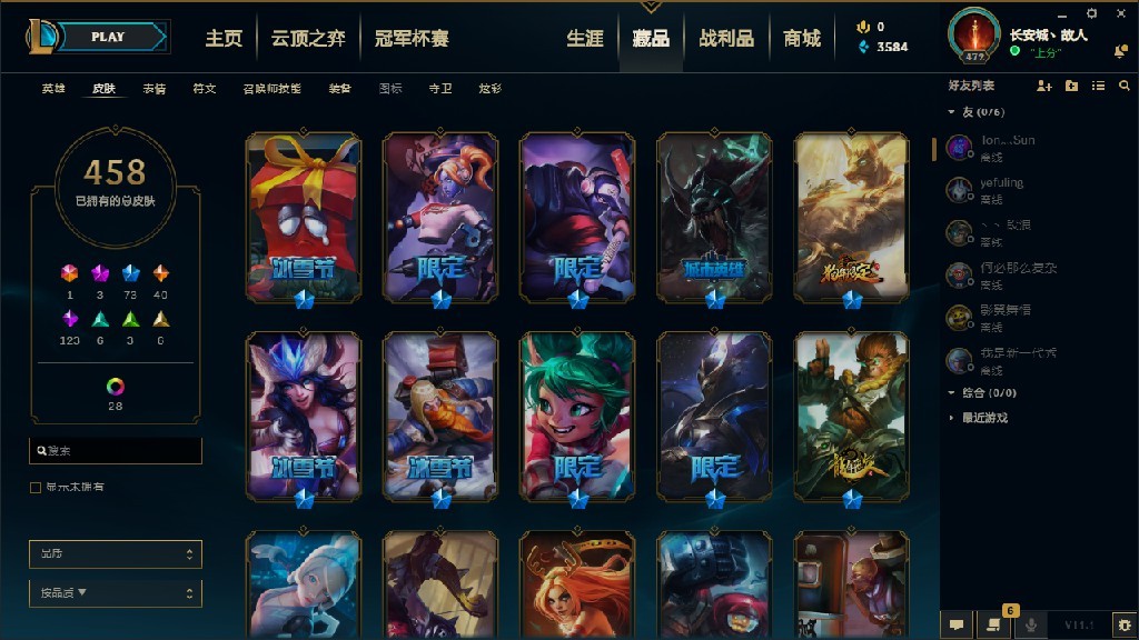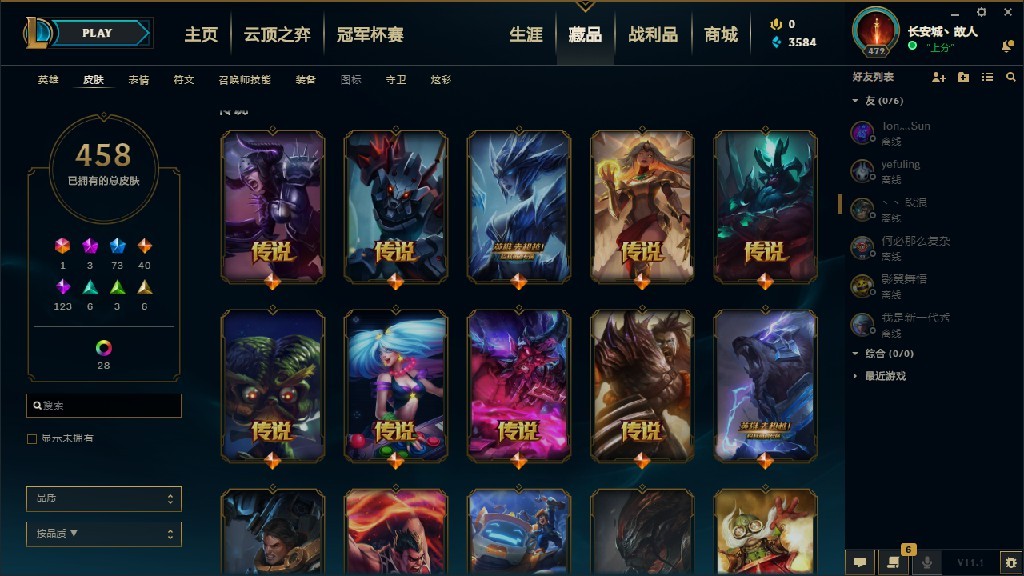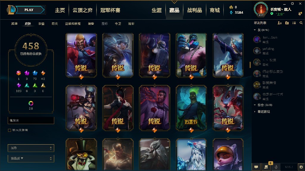 真实2031皮/89神话/龙瞎+蓝炫/哥特萝莉/龙猴+龙刀+龙琴/情人节全套/原计划全套/IG冠军限定/FPX冠军限定/200多限定/每个英雄都有全有/看图
