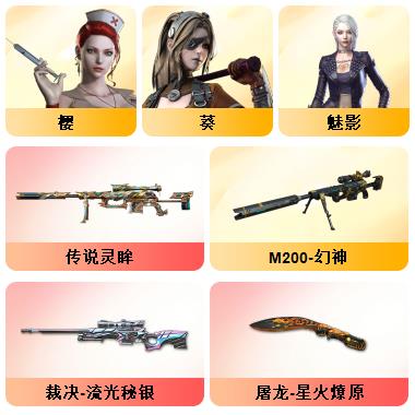 100V星神/六烈龙/生化无需换弹/QBZ蔷薇/白鲨COP/王者春/毁灭音效+雷神音效+极光音效/毁灭耀金/雷神白鲨耀金/火麒麟EVEN+华夏之心+轻羽AG皮肤