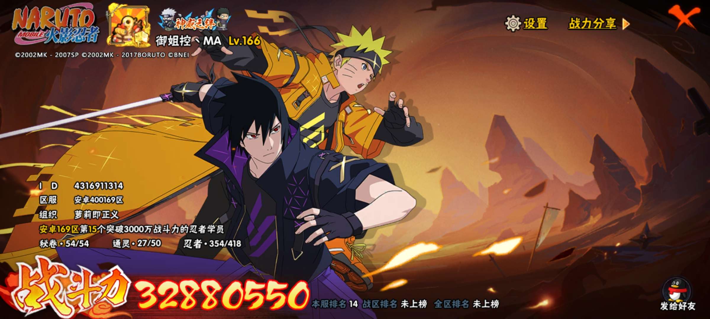 • 游戏区服:火影忍者 / 安卓 / QQ账号