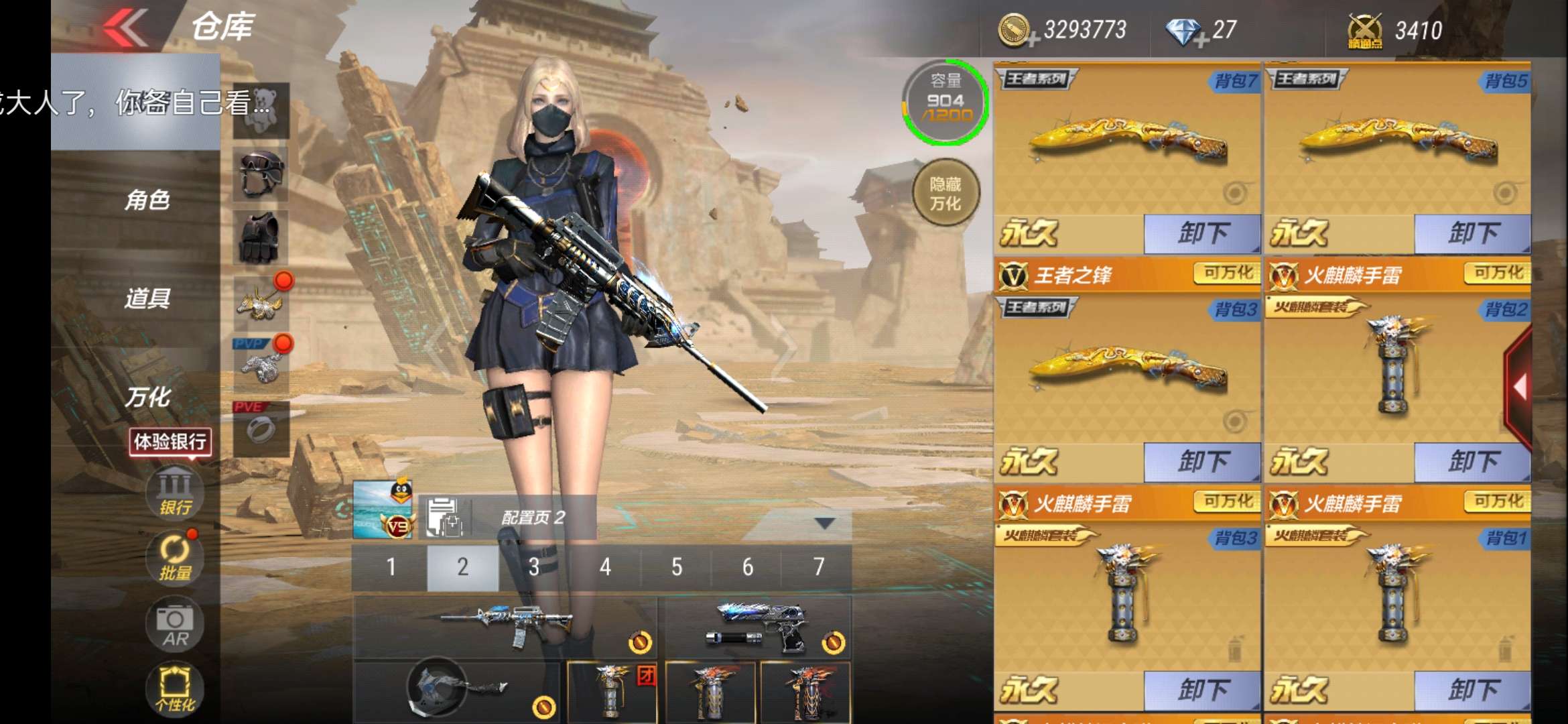 V9,116V,王者之心,王者之魄2把,王者之锋5把,火麒麟3套,巴雷特雷神,激光8把,无影7把,