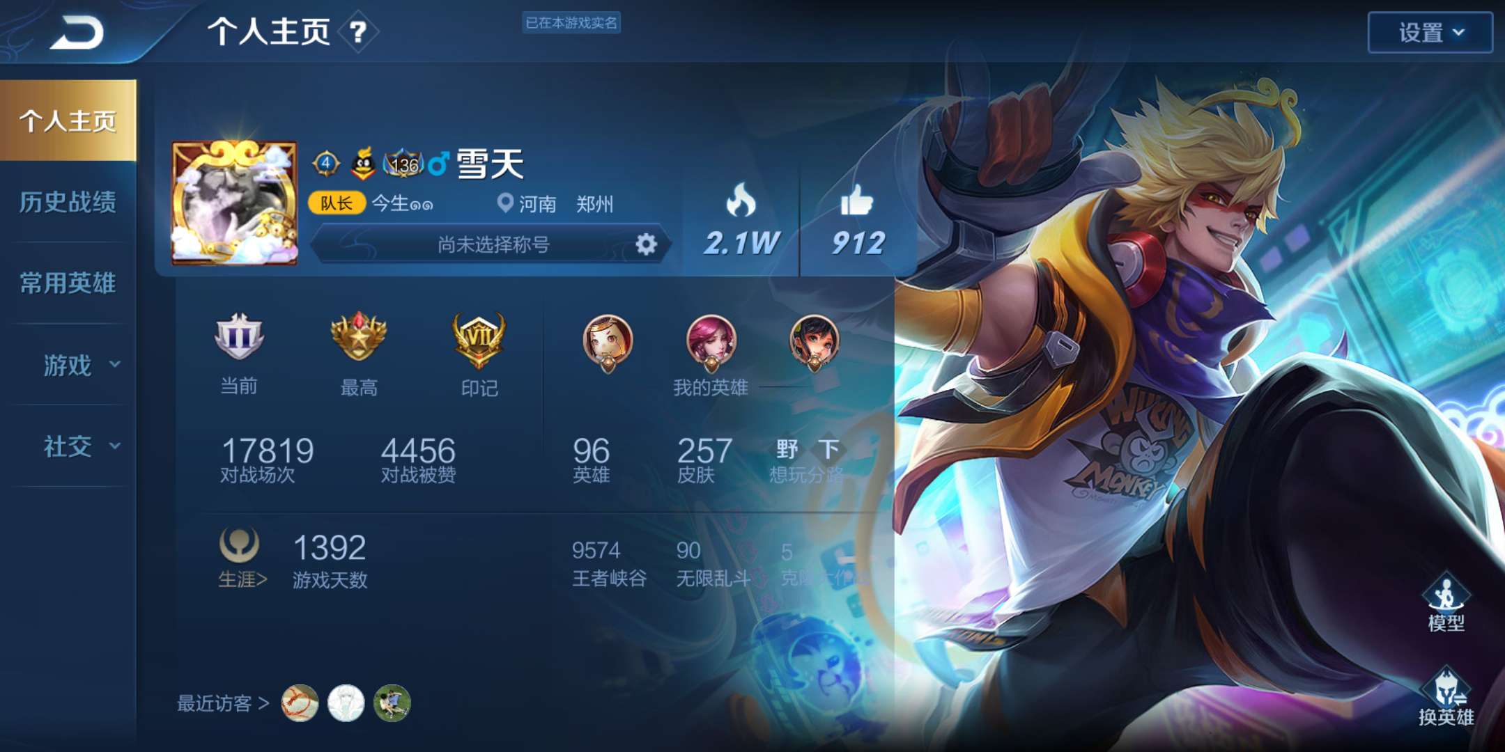 • 游戏区服:王者荣耀 / 安卓 / QQ