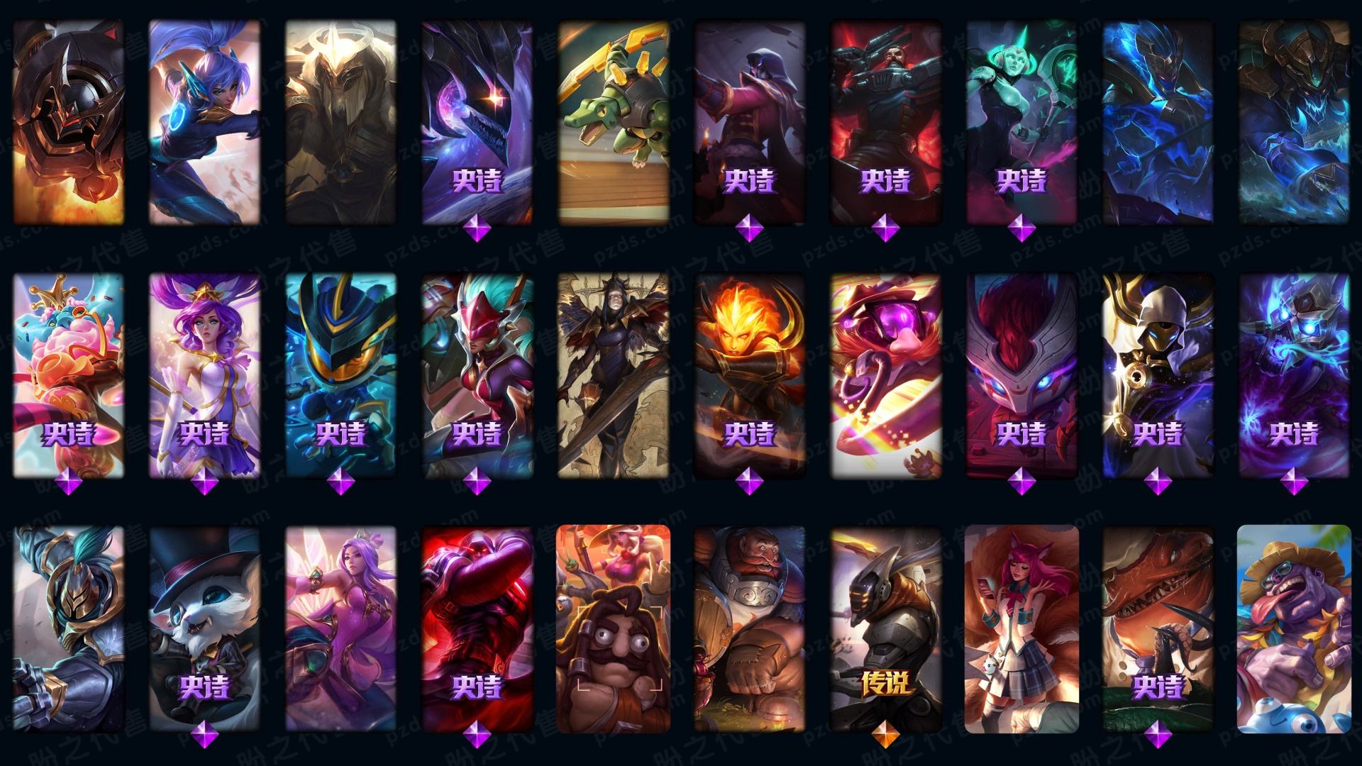 真实1840P/可排位/最新至臻亚索/43个至臻(卡特+女枪等)/龙瞎+龙猴+龙刀+龙琴/先驱者瑞兹/fpx冠军套/ig冠军套/超多年限/满情人节皮/