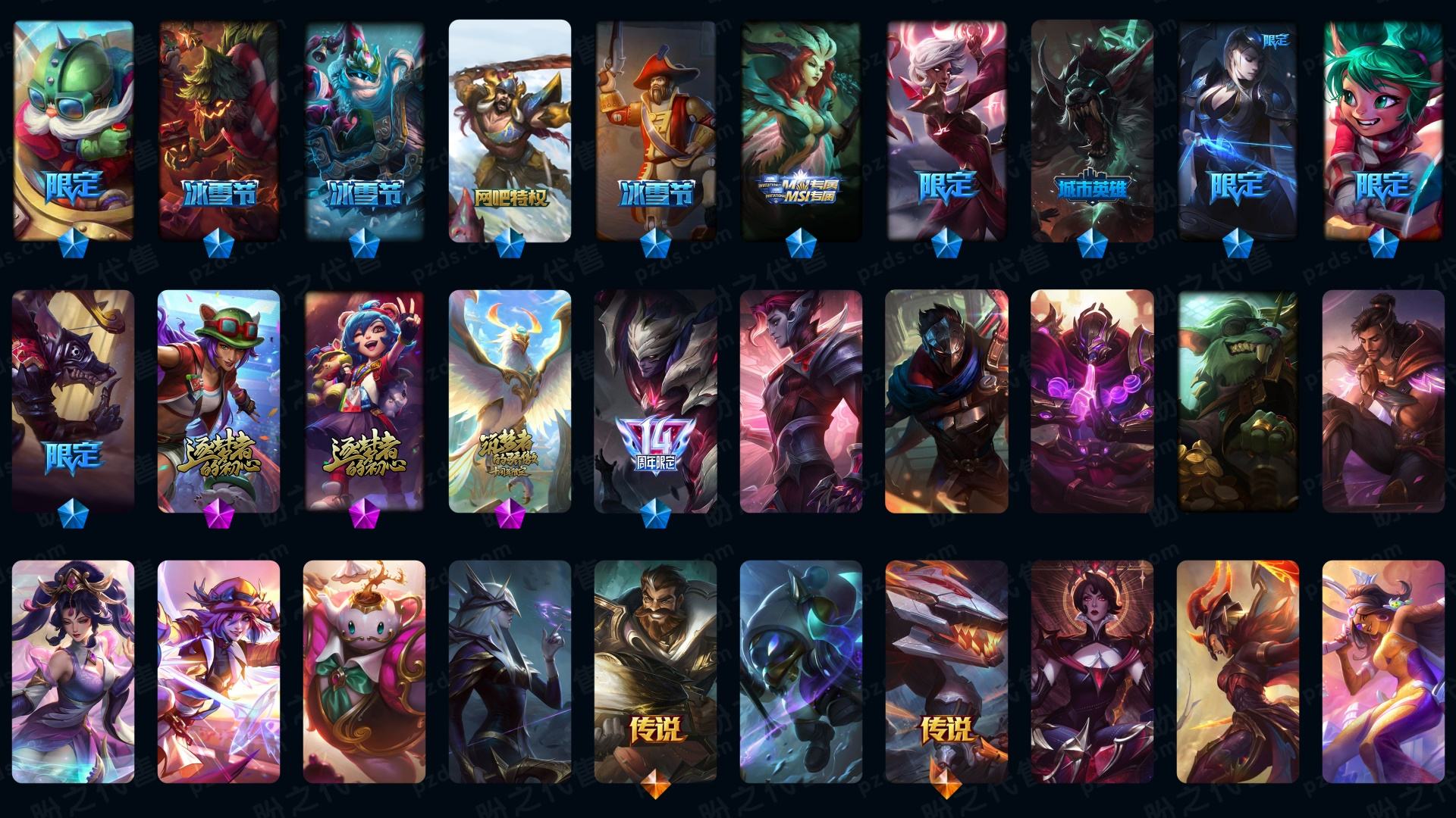 👼 皮肤帝实时更新皮肤 1008皮肤 龙虾 征服者 海克丝系列 主播级土豪号 梦游仙境 花木兰