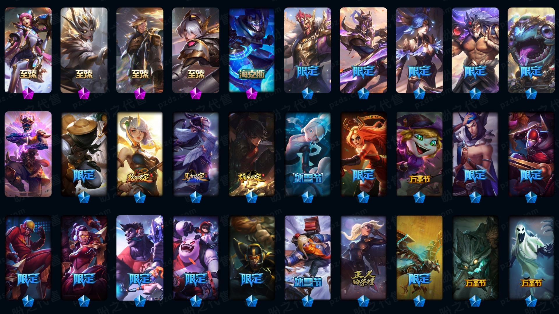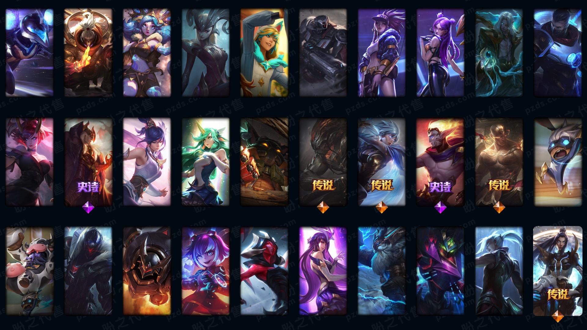 可排位-1607皮-456炫彩-217限定-101传说-29神话至臻-龙虾-至臻卡莎-阿卡丽-寡妇-阿狸-女警-薇恩-ez-万豪-卢锡安等-超多年限-情人节