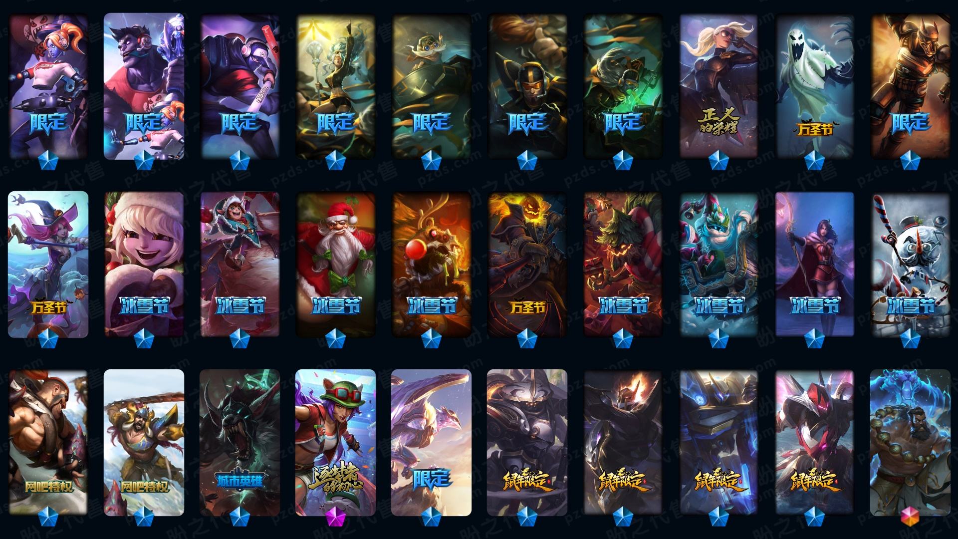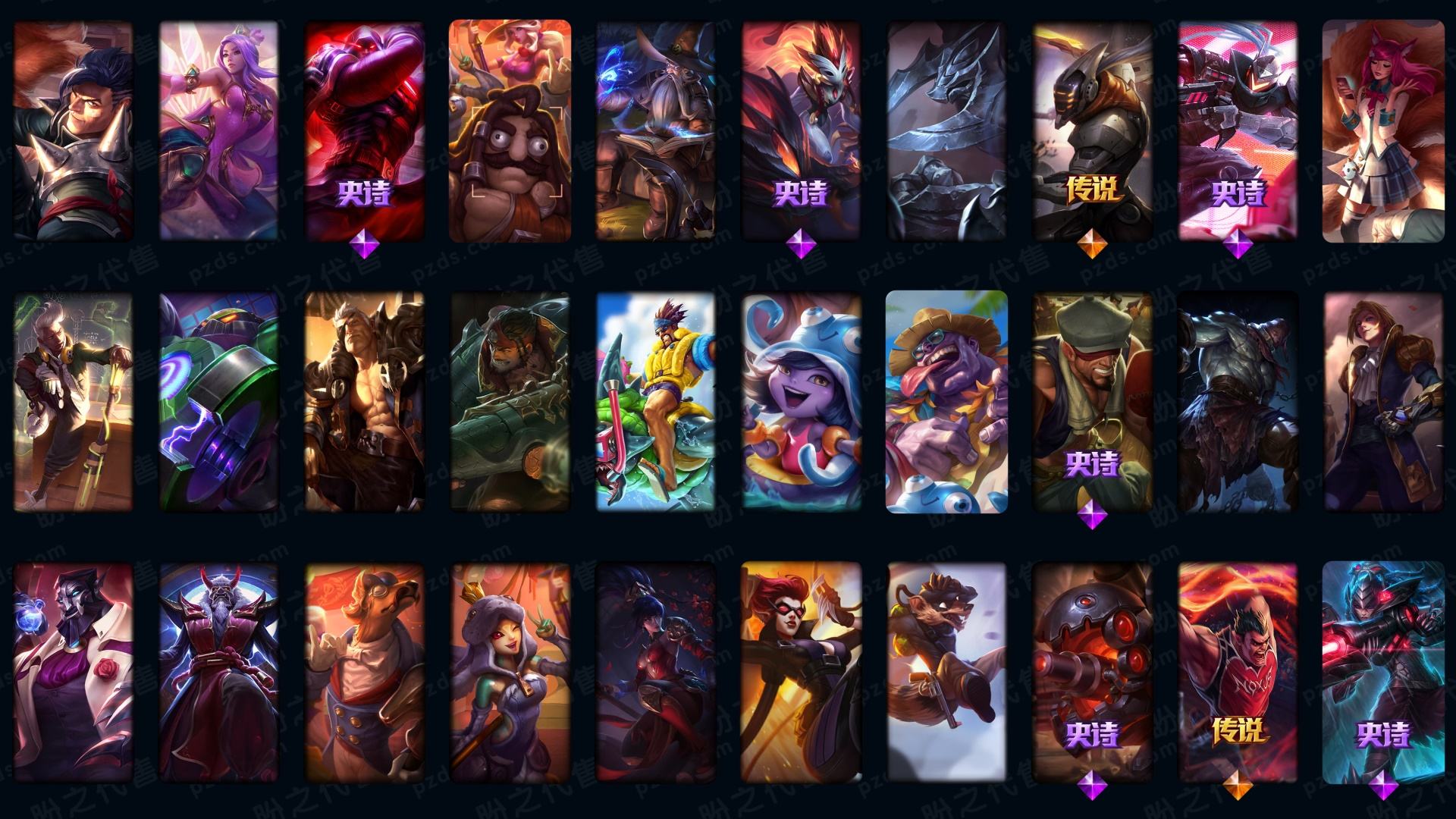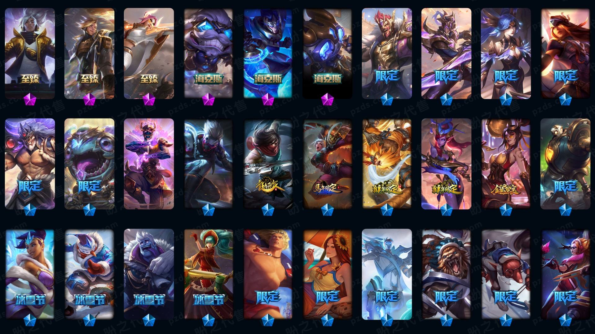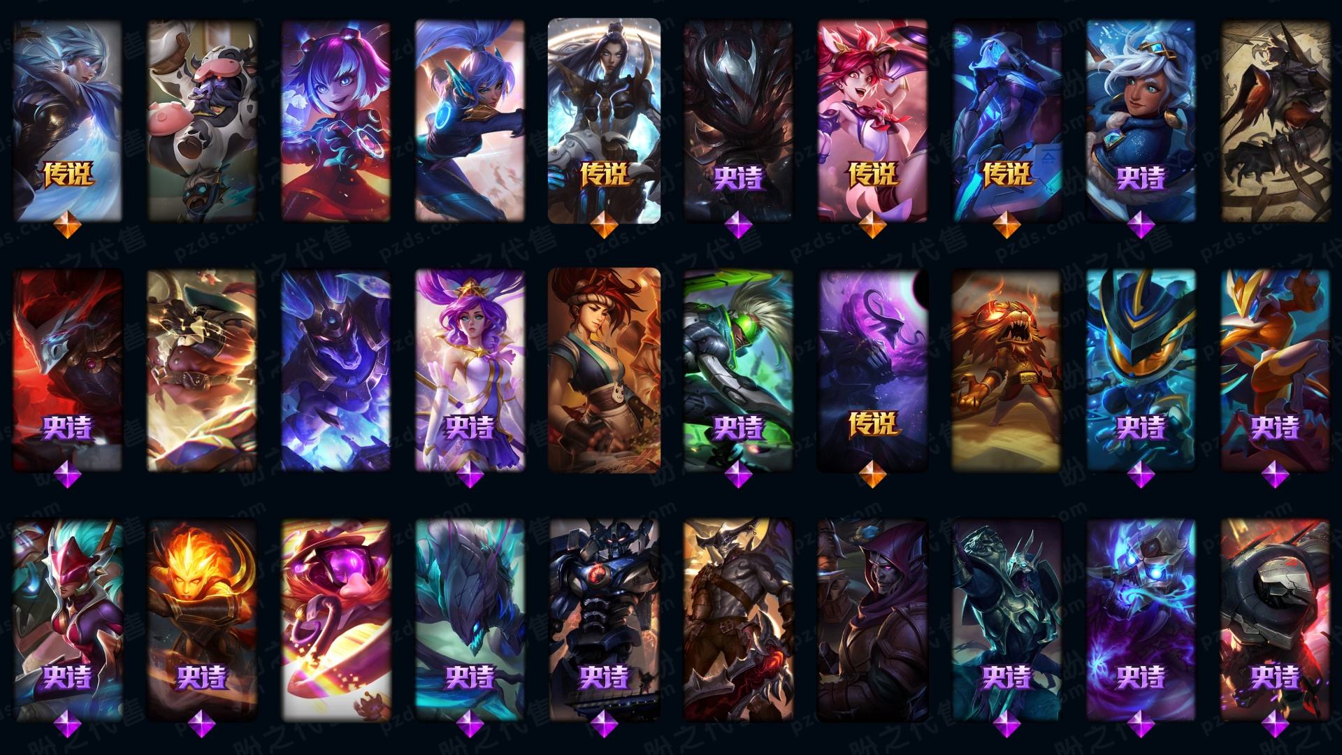 1255皮🌼满神话+全系列至臻皮肤(有最新至臻)+3星小小英雄+周年男女刀+黑夜吸血鬼+海克斯皮肤多+全英雄高质量皮肤号