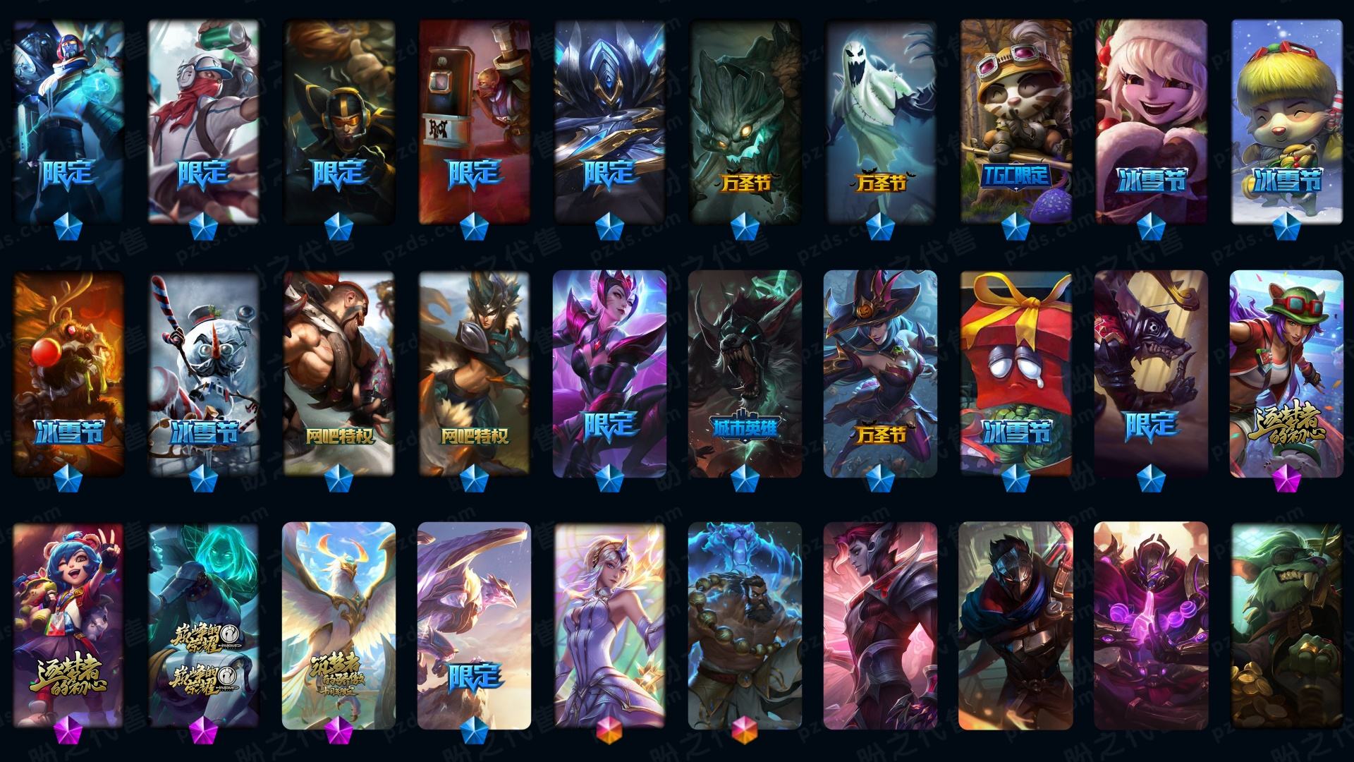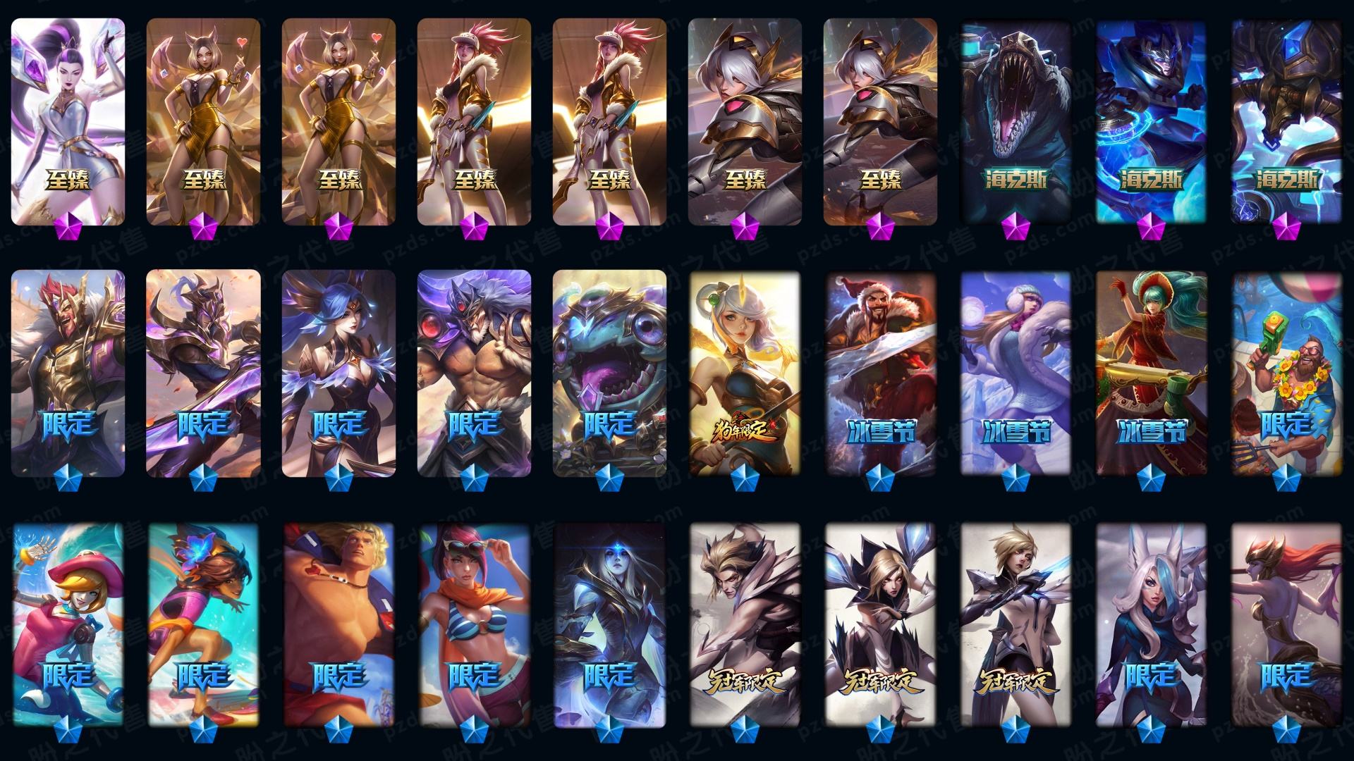 可排位-1469皮-503炫彩-201限定-86传说-34神话至臻-龙虾-至臻卡莎-阿卡丽-寡妇-阿狸-女警-薇恩-ez-万豪-卢锡安等-超多年限-情人节