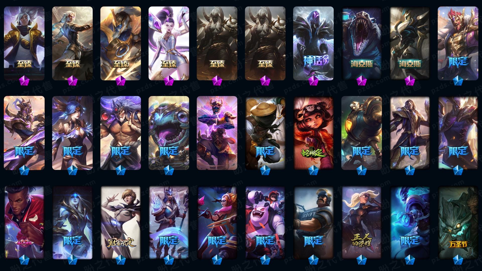 真实1347皮/铂金可排位/21神话/186限定/80传说/至臻寡妇-劫-锤石-万豪-ez-永恩-妮蔻等/海克斯科技薇恩/龙年限定4个/超多年限超多精品皮肤/具