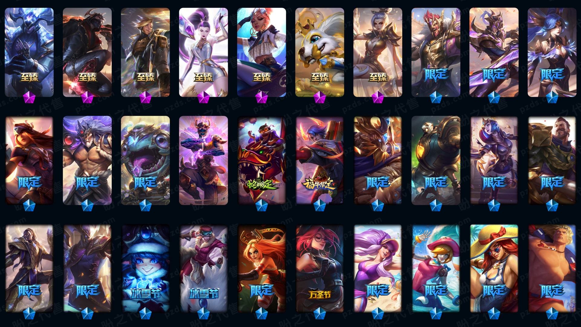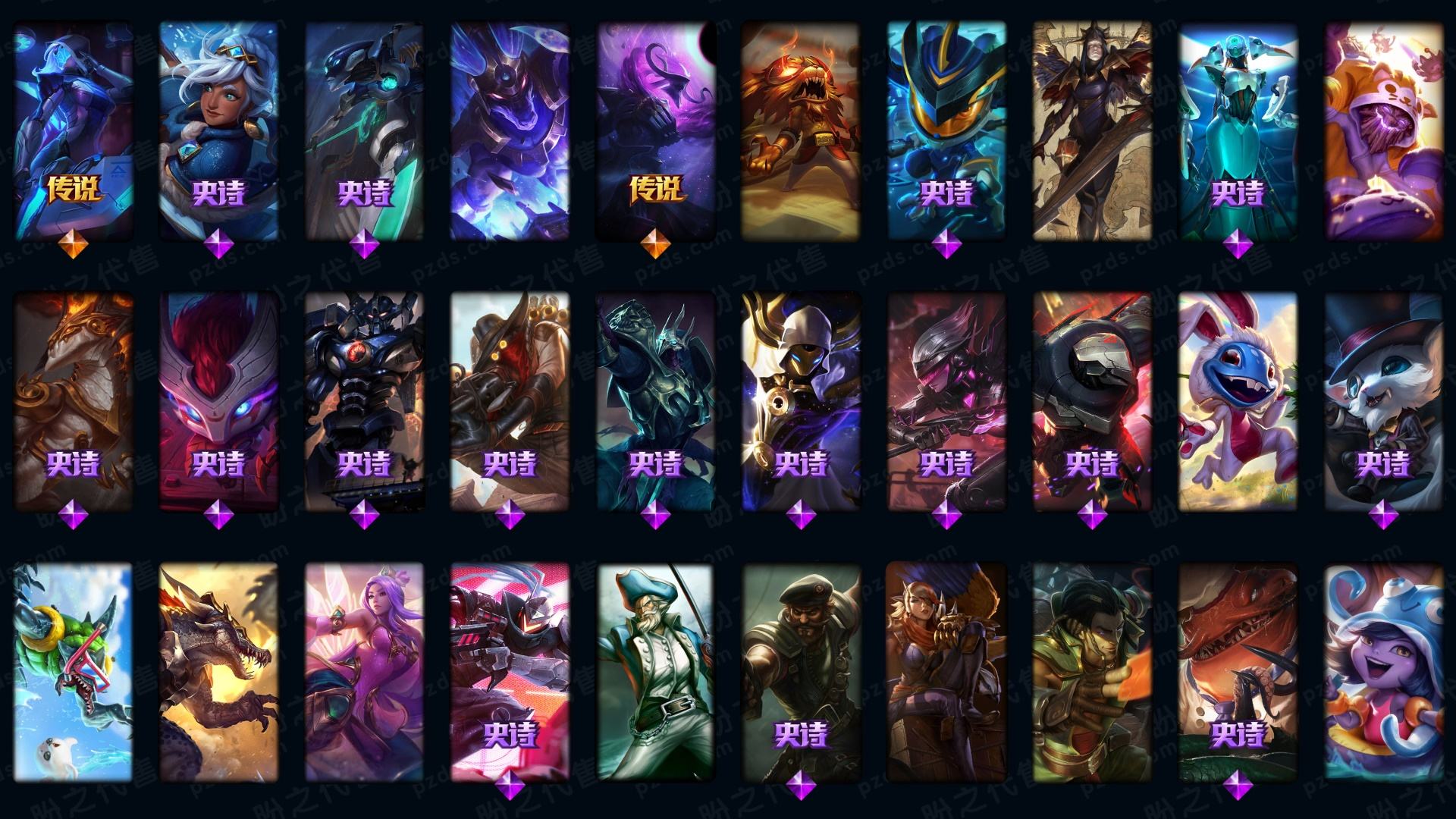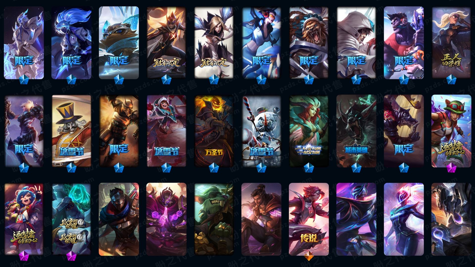 全部英雄 新款1000加皮肤 摄魂vn 龙虾 梦游仙境 龙刀 花木兰 电玩系列 情人节系列泳池派对系列 各种周年
