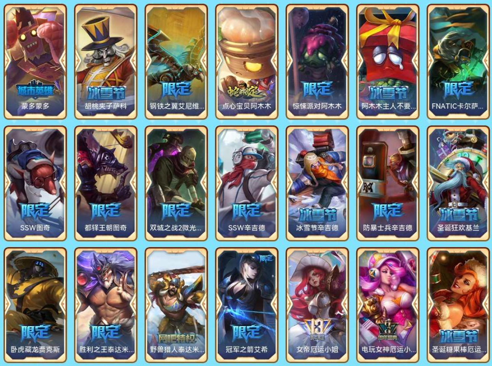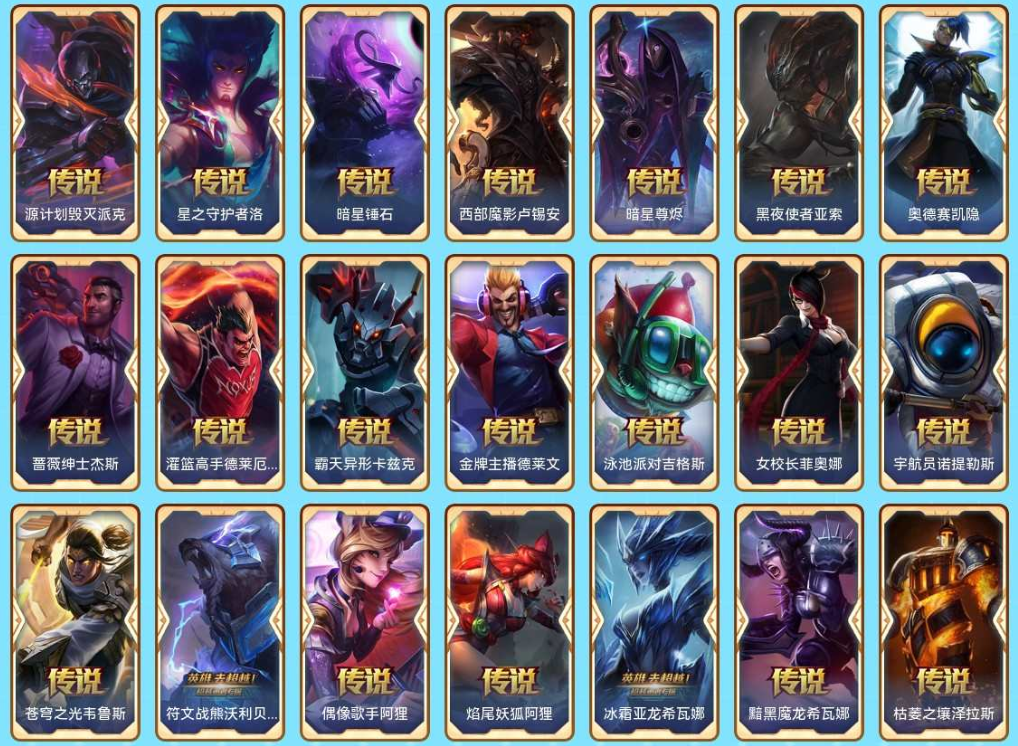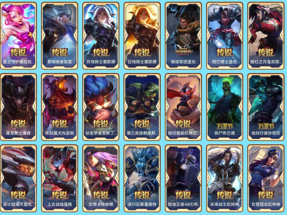 650p52神话☆灰烬铁男水晶艾希-至臻青花瓷冰女-kda卡莎等-北极星皎月-igEDG全套-花木兰-泳池-大量周年限定年限定-绝息圣堂套等-详情看账号描述