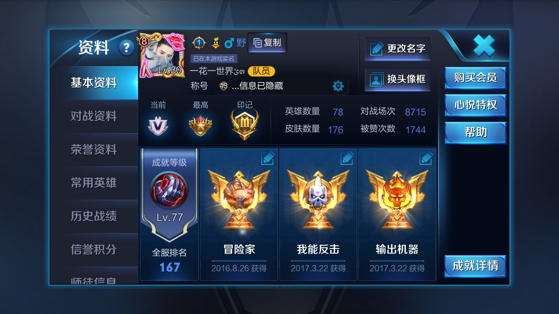 • 游戏区服:王者荣耀 / 安卓 / QQ