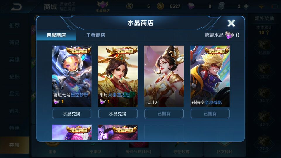8⃣💯🈵英雄4⃣荣耀水晶!全息猴子!武则天,天鹅之梦,杀手不太冷150皮肤!企鹅
