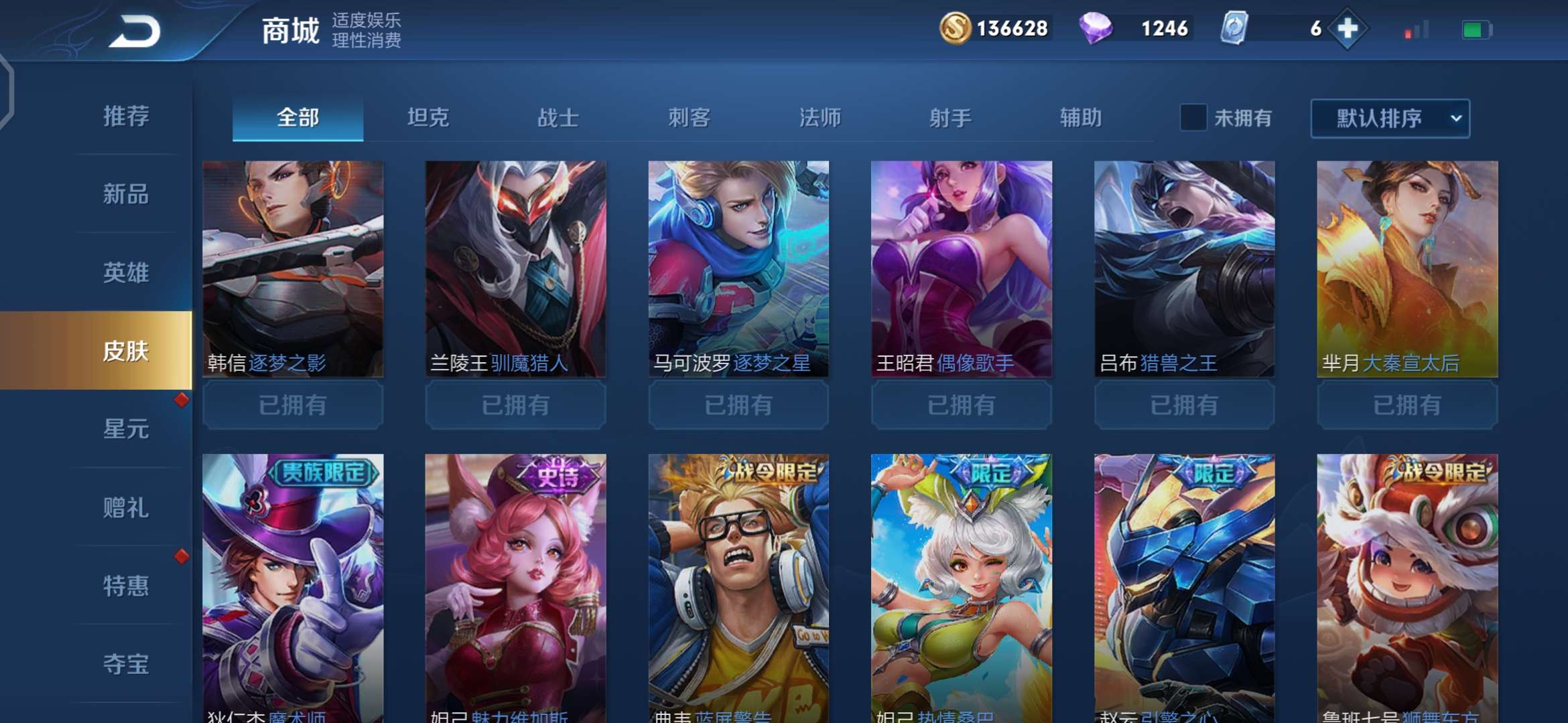 首页 > 租号大厅 > 王者农药 > 标题写明区服/QQ > [炘儿出租]186皮肤/武则天/天鹅/太后/金色貂蝉/武陵仙君/至尊宝