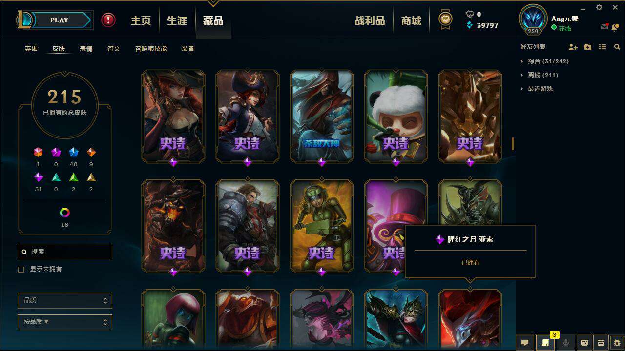 《特价出租》♥300皮肤♥145英雄♥白银段位♥可打排位♥克格汪♥黑夜使者♥未来战士♥DJ琴女♥女猎手♥鸡里奥♥披萨小姐姐♥源计划系列♥星之守护者系列♥冠军系列♥极速可乐微笑阿离肥波左手菲菲人人