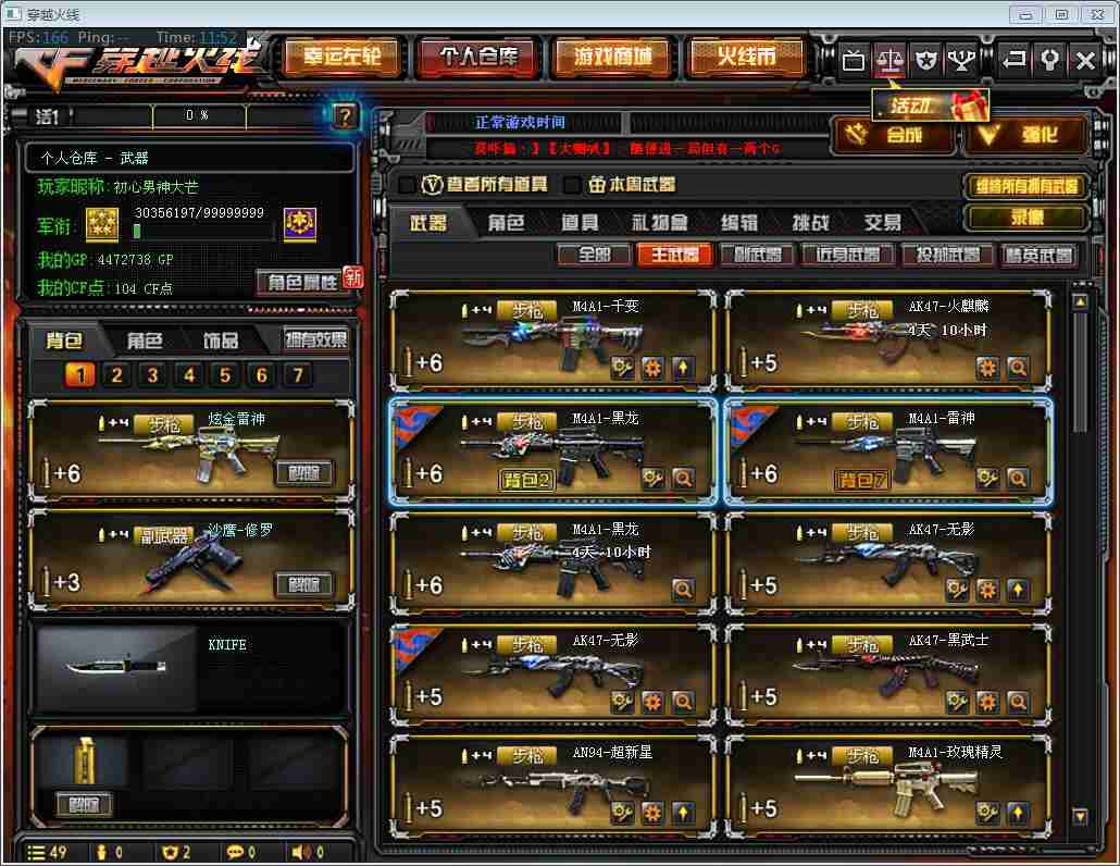 • 游戏区服:穿越火线 / 电信区 / 南方大区