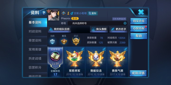 • 游戏区服:王者荣耀 / 安卓 / QQ