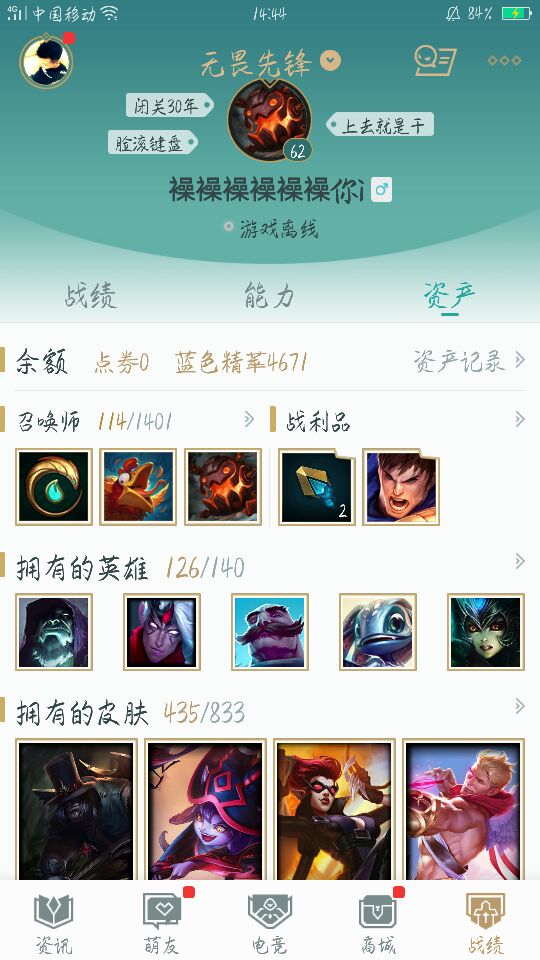 首页 > 租号大厅 > 英雄联盟 > 联盟五区/无畏先锋 > ✔✔✔假期折扣特价☜,400+皮肤,各种炫彩,电玩,海克斯安妮,摄魂vn,卧虎藏龙,各种限定,典藏,