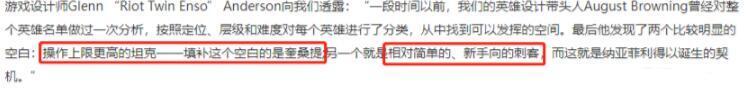 我们看到LOL新英雄纳亚菲利的介绍中,官方设定被吐槽,居然是一只伤害爆表的坦克,定义中描述他为“操作上限更高的坦克”,然后又有“相对简单的、新手向的刺客”,这两个完全不同的英雄设定,是怎么融合在一只英雄上的?