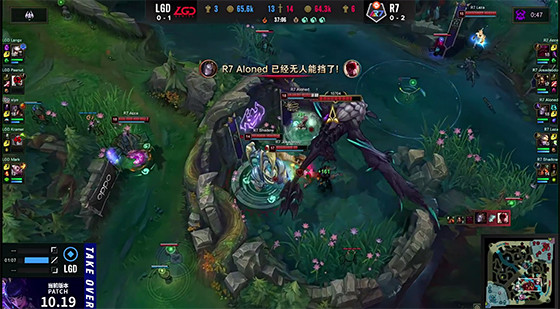 第四局R7 1:0 LGD Aloned发条关键大招终结老鼠。晚上19:00为LGD的入围赛第二战,对阵遭遇2连败状态低迷的R7。双方在前中期一度打得有来有回,远古巨龙团战R7发条大招终结了老鼠,帮助R7解锁双龙汇击败LGD终获S10首胜!LGD喜提两连败。