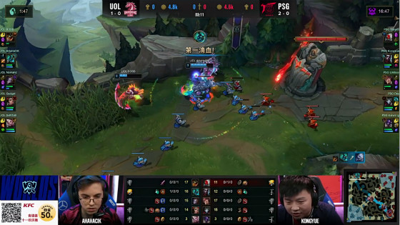 第五局UOL 1:0 PSG 下路乌鸦奇招显灵UOL再下一城两连胜。UOL士气如虹拿下首胜后迎来了同样保持不败的PSG战队,强强对决誓要争夺B组第一的宝座。UOL战队状态火热再下一城,通过中期一波果断的进攻终结了PSG的连胜。