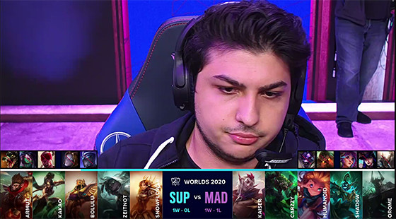 第二局SUP 1:0 ITZ KaKAO人马暗影冲锋势不可挡。在首日苦吞2连败的ITZ迎来“生死战”,对阵曾在S5效力于iG的打野老将KaKAO领衔的SUP,如果ITZ本场失利将基本无缘出线。SUP选出上野慎加人马的冲阵体系,前期团战中慎收获两波双杀装备极佳,最终SUP大优势横扫ITZ,喜提S10首胜!ITF遗憾告终。