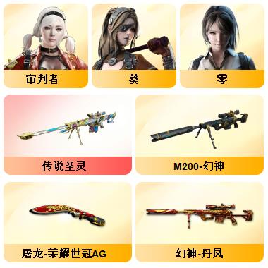 100V幻神荣光套/电竞云悠悠/惊若翩鸿/蛇隐宗/QBZ蔷薇套/毁灭音效+星空耀金青帝/极光音效/雷神星空/AG火麒麟/雷暴USP/六修罗/王者冰魄/开挂必起诉