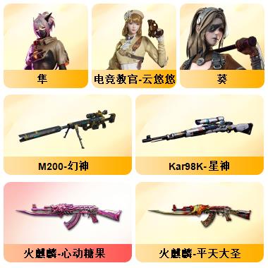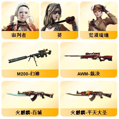 4防神威莲华+妮妮鹰迅捷虹喵+幻神3皮冠军音效三件套+裁决量子音效三件套+98K量子+金蚀+白虎巅峰音效三件套+QBZ冠军微+G36幻影+QBZ银翼+法玛斯天戎