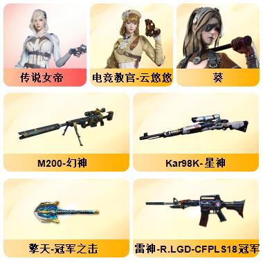 竞技荣光+QBZ+COP-雷霆*2+柯尔特-竞技荣光*3+USP雷暴*1+12套雷+音效卡(火麒麟+雷神+毁灭+黑骑士)+套装(竞技荣光套)