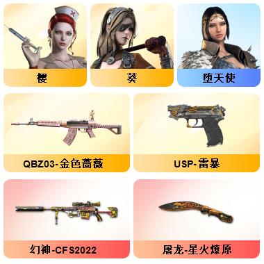 10王者☀毁灭音效卡☀7烈龙☀7副7刀☀CF网剧冠军套☀夜魔套☀堕天使套☀王者炎心☀死亡之眼子弹1000多发